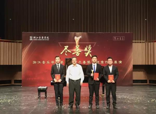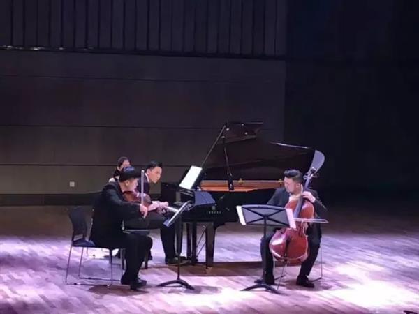 在本届“尽善奖”的舞台上,他们精心呈现给观众的作品是斯美塔那《g小调钢琴三重奏》,这首作品是斯美塔那对不治身亡的女儿的哀悼之歌,有在提琴交织声中钢琴深情的咏絮,有在大调的明朗中催人泪下的回忆与父爱。曲子流露着伤感的故事和深刻的思想,三位同学在音乐的流动中也自如地表达了作品的情感和内涵,有精湛的琴技的展现,更有无边默契的表露。