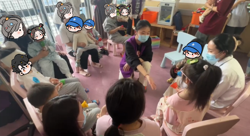 用“音”传递爱,用“乐”暖人心,音乐疗愈项目还走进病房开展活动。音乐学院的赵明明老师带着音乐疗愈项目的志愿者们来到21楼烧伤整形科,运用各式各样的小乐器,带领着小朋友们发出不同的节奏,在互动中让小朋友们跟着音乐节拍,配合身体动作的变化,释放他们的快乐,从而缓解就医时的紧张情绪。