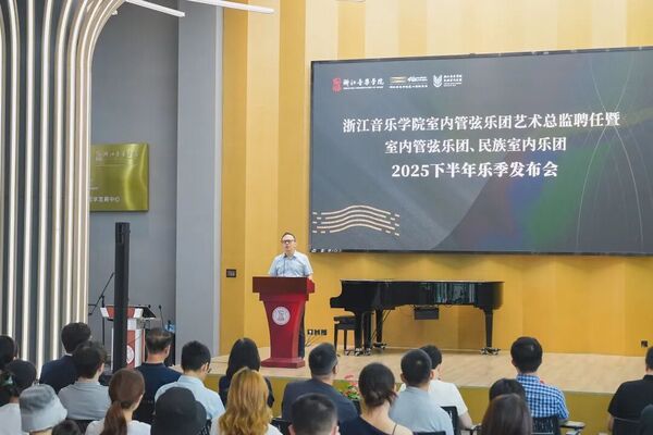 聘任仪式结束后,钱骏平与浙音民族室内乐团艺术总监王甫建,共同发布了两个乐团新乐季的演出计划。据悉,乐季将贯穿2025年9月至2026年1月,两个乐团将围绕“中西并行、双线共鸣”的艺术布局,共推出20场精品演出,打造“一场一主题、一曲一精品”的高水准室内乐盛宴,推动东西方音乐深度交融,丰富杭城艺术生态。