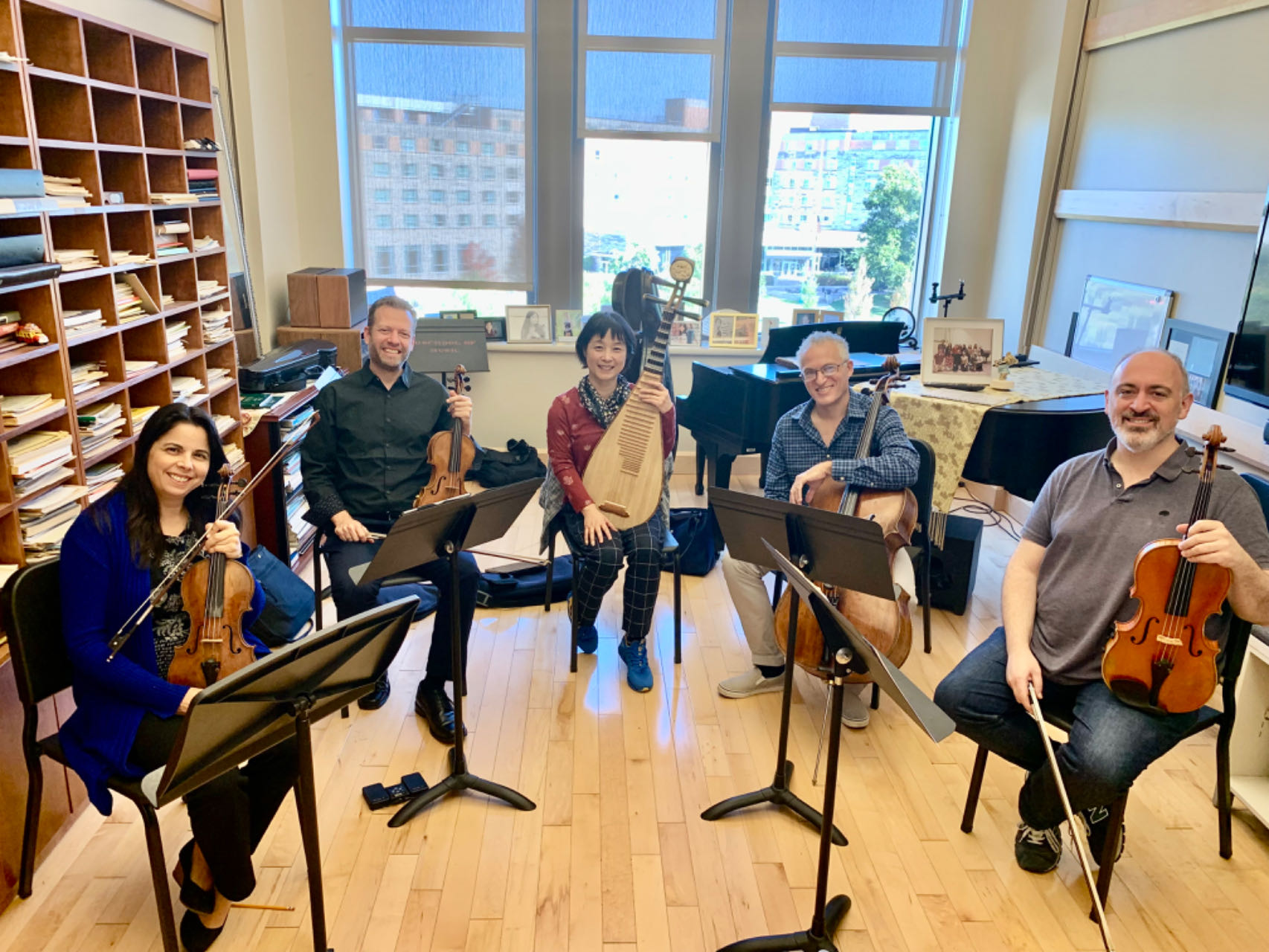 当天的访问中,吴蛮教授除了与该校作曲系研究生代表Corey Chang 沟通有关与我校国乐系合作的“雅各布浙音新作品音乐会”的细节进程外,还与该校弦乐系教授、两次获得格莱美奖的世界著名帕西菲卡弦乐四重奏(Pacifica Quartet. http://www.pacificaquartet.com/about)为11月底参加我校举行的“浙音-国际室内乐音乐节”闭幕音乐会进行排练。四重奏团的教授们热情期待首次去中国访问,更期待在大师课中与我校师生交流分享弦乐四重奏的演奏艺术风格和经典曲目。