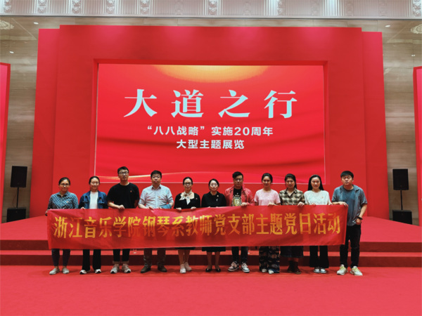 为进一步巩固主题教育成果,深入学习贯彻习近平总书记考察浙江重要讲话精神,深刻领悟“八八战略”丰富内涵和时代价值,11月1日下午,钢琴系党总支书记崔洁、教师党支部书记徐洁、学生党支部书记杨凯翔带领师生党员、学生干部等走进浙江展览馆,参观了“大道之行——‘八八战略’实施20周年大型主题展览”,切身感悟“八八战略”指引下的浙江发展之变。