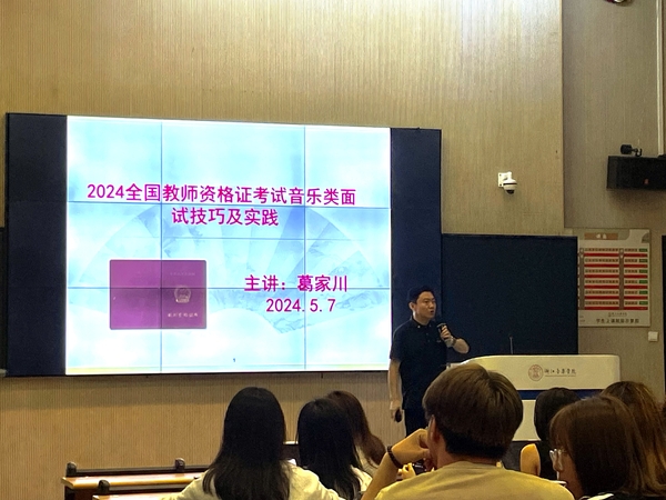 为帮助学生更深入地了解全国教师资格考试面试的流程和规则,提高面试技巧和竞争力,5月7日,音教学院开展2024届就业帮扶计划“职”为你来——全国教师资格考试面试技巧与实践培训会。杭州师范大学声乐副教授葛家川受邀作为本次培训会主讲,为浙音学子传授教资面试技能。