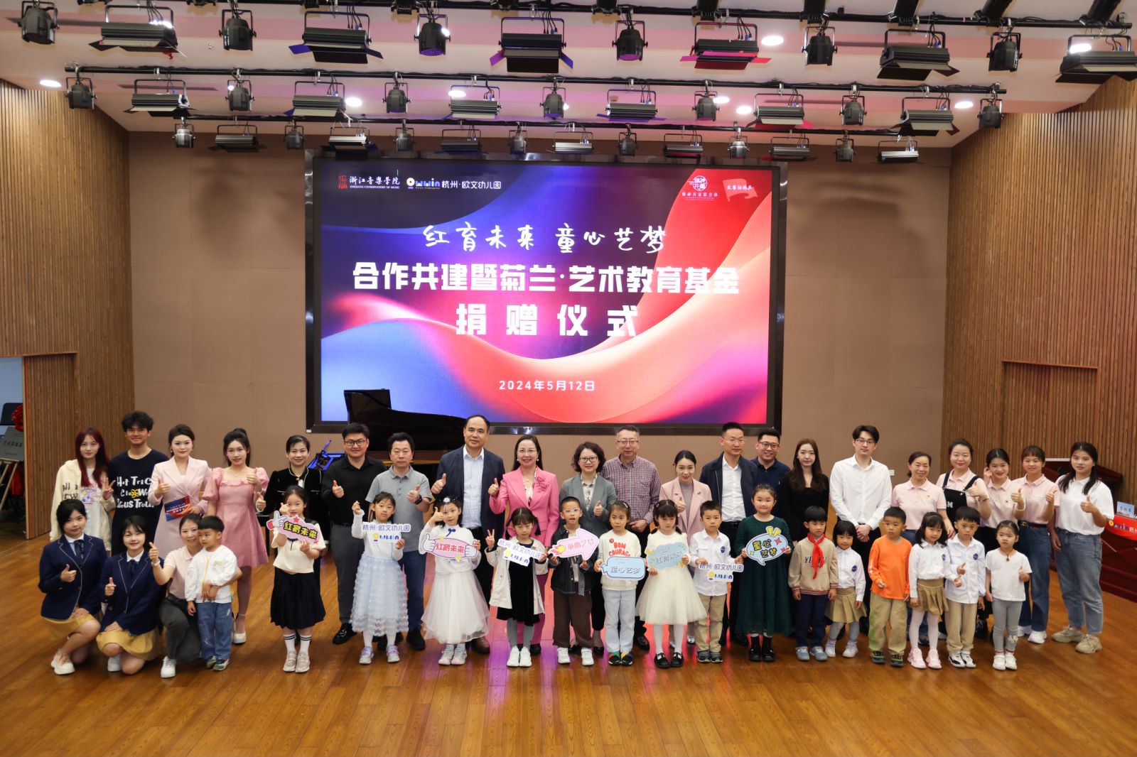 5月12日上午,学院与杭州市欧文幼儿园合作共建暨“菊兰·艺术教育基金”捐赠仪式在南区音教小剧场举行。滨江区妇联党组书记、主席徐俏俏,滨江区工商联党组成员、副主席郭鹏,欧文幼儿园理事长、书记、园长裘菊兰,学院党委副书记王均寅,相关职能部门负责人、师生代表以及欧文幼儿园教师、学生和家长代表等200余人参加活动。