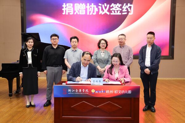 仪式上,王均寅与裘菊兰共同签署捐赠协议。裘菊兰向学院教育基金会捐赠100万元,并设立“菊兰·艺术教育基金”,用于支持浙音人才培养、学科专业建设、艺术创作实践以及学校高水平建设发展等。