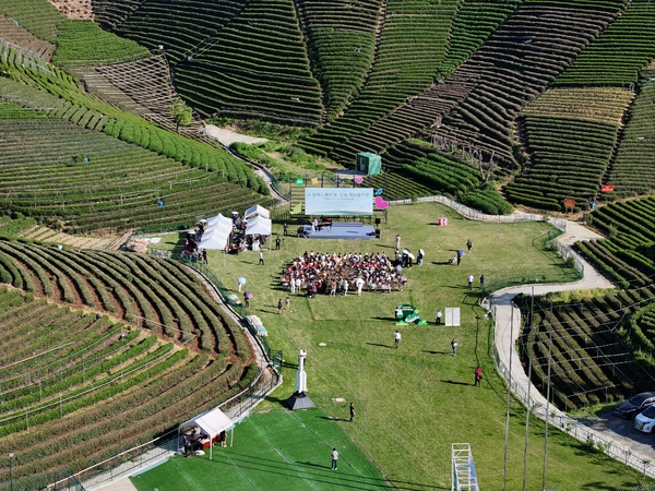 天色尚早,村民们就围在草坪旁,翘首以盼家门口的艺术盛宴。音乐会的开场节目,是由村民演唱、学生伴舞,浙音作曲与指挥系为何家村量身打造的村歌《美丽何家村》。这首歌不仅展现了何家村的美丽风光,更是校地艺术共建、文艺助力乡村振兴的生动写照。“在我们自己的茶园里唱响自己的家,这个感受太棒了!”何家村村民、音乐会参与者徐庆祥激动地说。