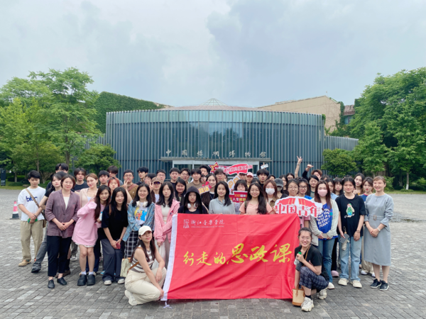 5月21日,马克思主义学院教师孙慧、董颖带领教学班学生走进西子湖畔玉皇山下的中国丝绸博物馆,开展“行走的思政课”实践教学。
