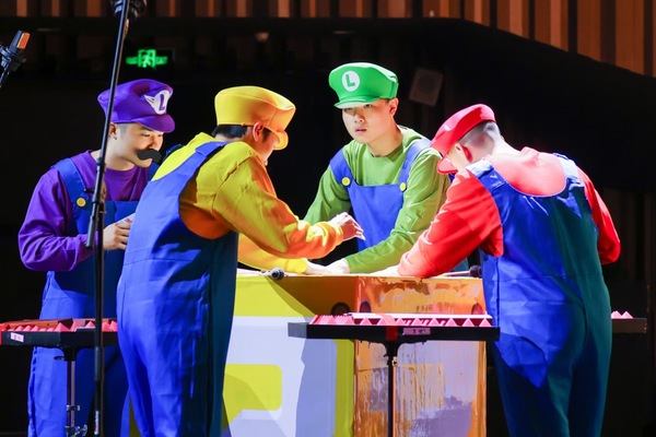 本场音乐会涵盖传统经典乐曲和当代原创作品,并通过跨界融合等方式创造听觉、视觉、联觉三位一体的新型舞台表现形式。开场曲目为瞿小松作曲的《定风波》,灵感来源于苏轼的同名词作,结合包括传统的中国打击乐器和西方现代打击乐器在内的多种打击乐器,通过丰富的音色和节奏变化,创造出多层次的听觉体验,展现了丰富的表现形式和艺术内涵。随后上演的《sand box》充满互动性、趣味性,4位演奏者扮作超级马里奥演出,以灵动表演和精彩演奏调动现场热烈气氛。作为本场音乐会主打作品,《和合》运用结合了听觉、视觉、联觉三位一体的新型舞台表现形式,用LED视频配合多样的表现手法和高深的演奏技巧,呈现了人、自然、社会交融的一系列深刻内涵。
