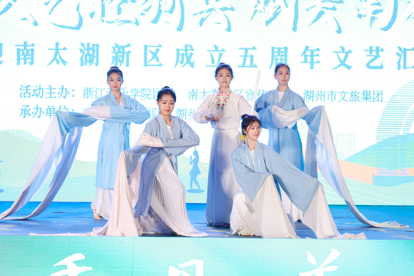 近日,湖州地标——南太湖新区月亮广场热闹非凡,掌声不断。由学院流行音乐系、音乐教育学院、戏剧系、舞蹈学院的近30名学生组成的“文艺轻骑兵”再次来到南太湖新区,用演唱、舞蹈、乐器演奏等表演形式,添城市活力,为文旅赋能,吸引众多市民驻足观看。