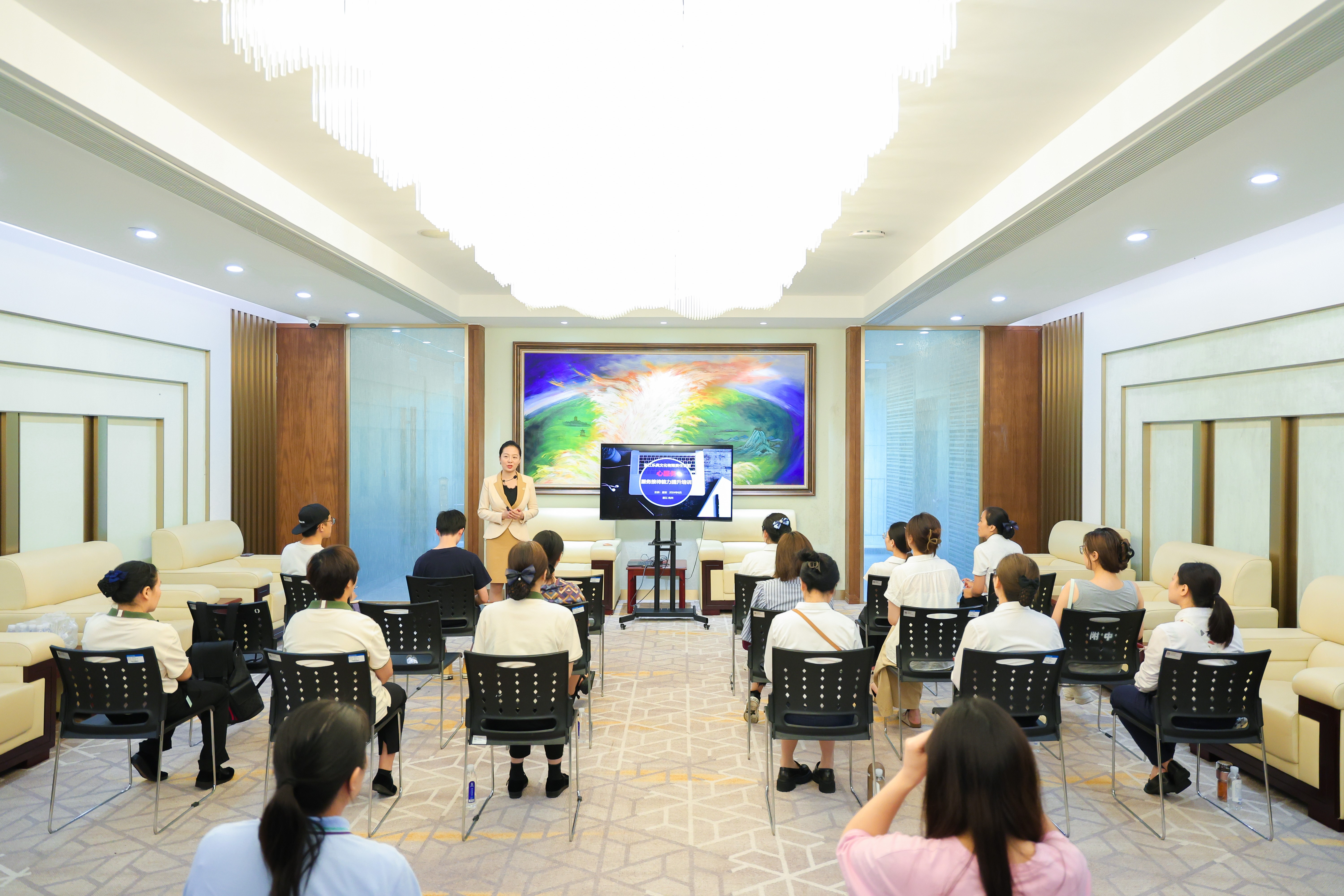 6月21日,为进一步提升业务服务质量,提高员工素养和职业形象,资产经营公司举办服务礼仪专题培训活动。此次培训邀请了业内知名的礼仪专家全国工商联人才中心高级培训师唐安娜老师担任主讲,公司客房、餐饮、会务、场务、行政等相关业务部门约40余名员工参加培训。