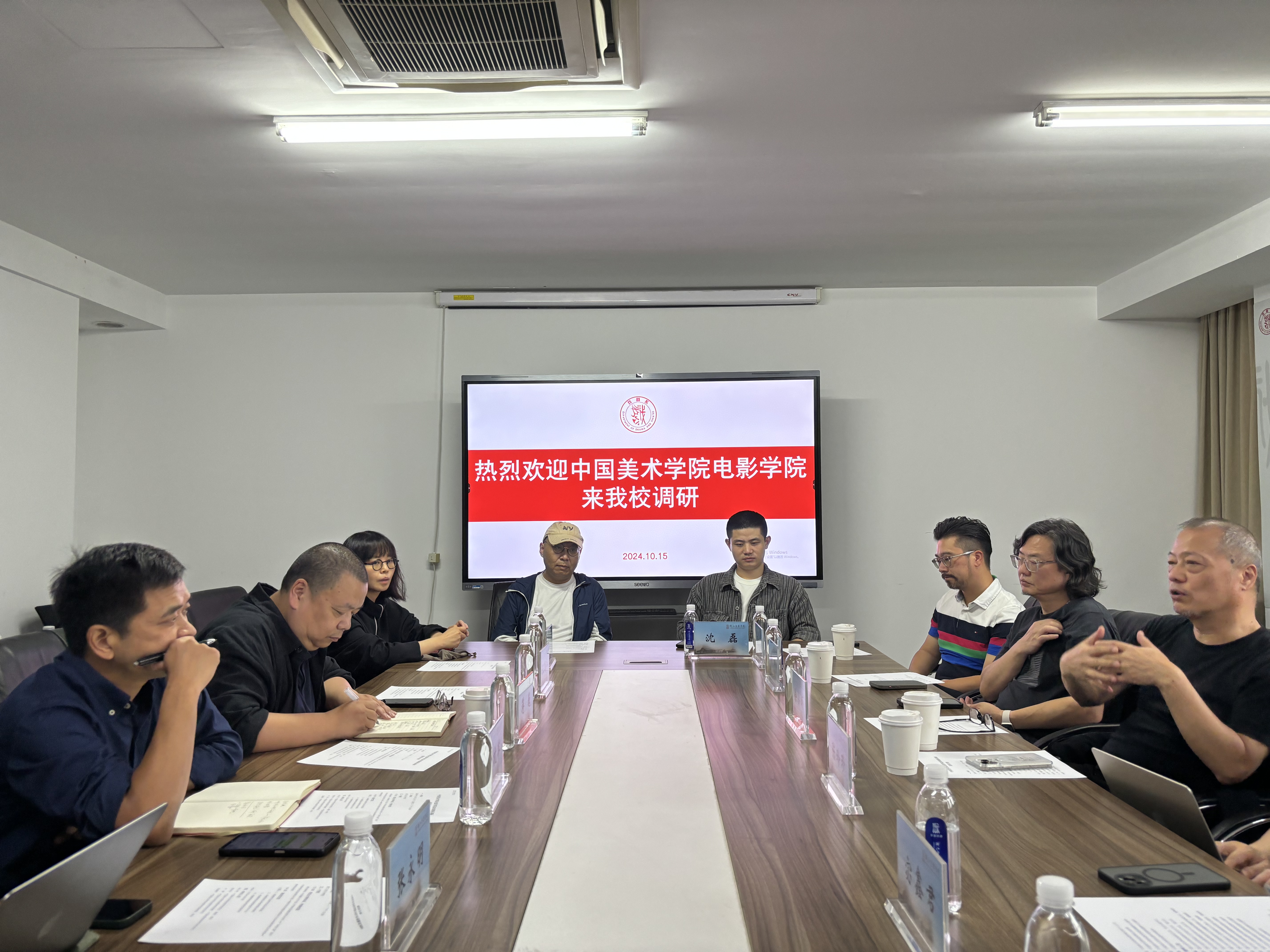 10月15日,中国美术学院电影学院院长徐小明一行来学院开展合作调研与学术交流活动,戏剧系、音乐工程系班子成员及戏剧系办公室、戏剧影视表演教研室、音乐剧教研室等教师参加调研,共同探索戏剧影视表演和影视音乐制作发展新路径。