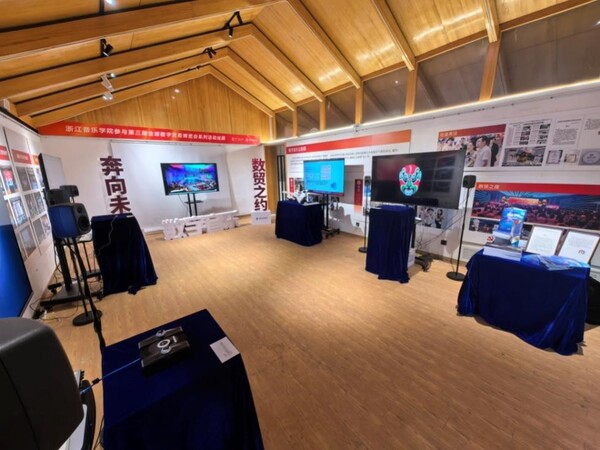 作为音乐工程系党总支与西湖区转塘街道长埭村党总支党建联建活动内容,双方以党建联盟为牵引,开展全方位、多领域、深层次合作。今年上半年,音乐工程系党总支带领师生走出校园,将艺术与科技专业毕业展开在了长埭村乡村文化礼堂。这次双方专门设立数字音乐展厅,将最新师生作品带到了乡村文化礼堂,通过师生专业学习和科研创作与服务地方结合起来,把优质的师生艺术科技作品带到广袤的农村大地,让老百姓感受数字音乐的新鲜活力,为乡村艺术发展增添数字音乐的动力。