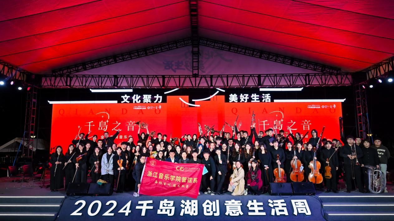 10月27日晚,“千岛之音”金秋交响音乐会暨管弦系2025届毕业生交响乐团汇报音乐会在淳安县千岛湖镇秀水广场上演,本次音乐会由管弦系2025届毕业生交响乐团倾情呈现,为千岛湖的观众带来了一场视听盛宴。淳安县副县长姜君出席并致辞,人大副主任徐香枝、政协副主席徐夏冰及县委宣传部、文广旅体局等部门负责人出席音乐会。管弦系相关负责人、辅导员、学生交响乐团负责人参加。