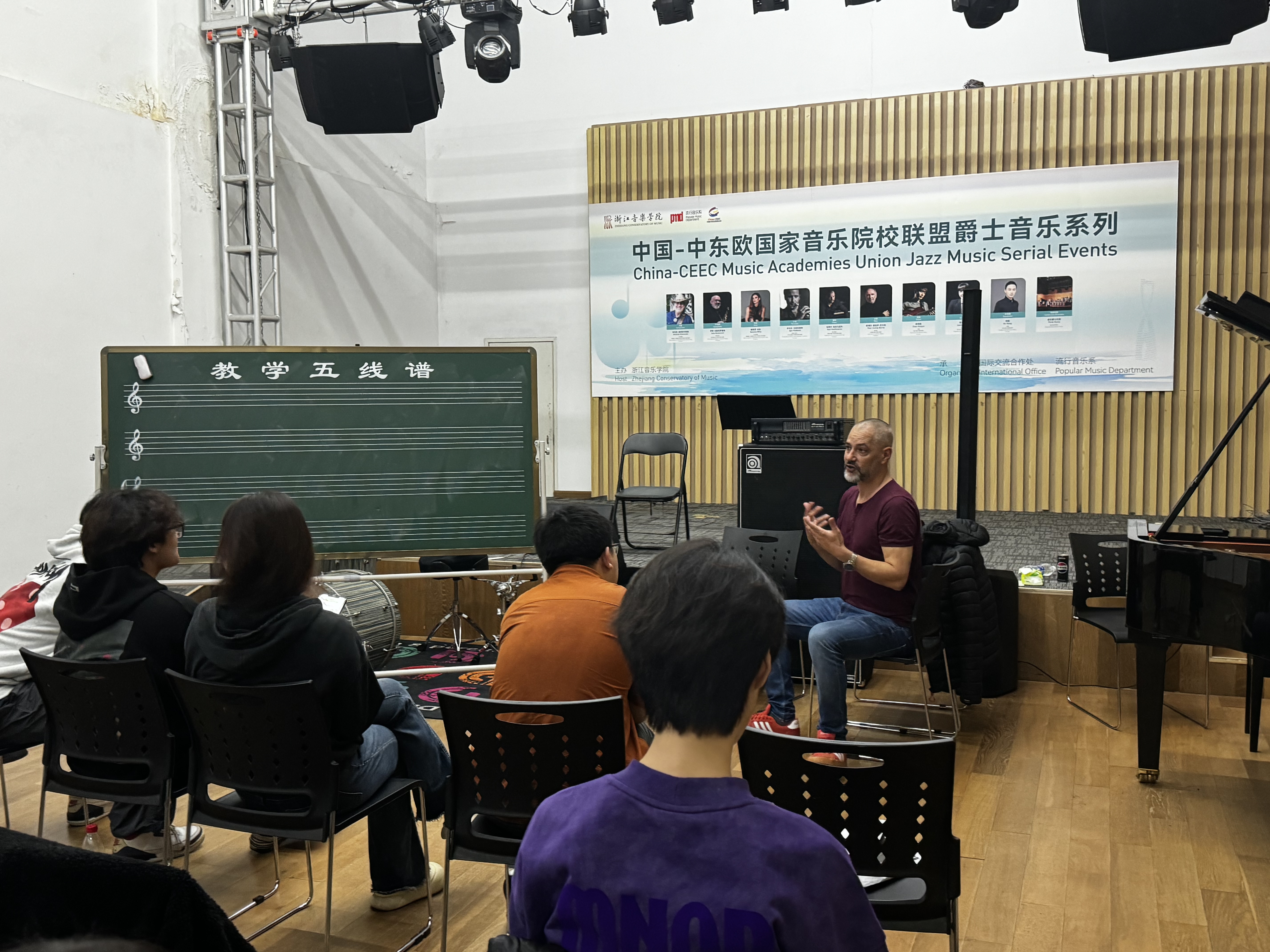10月15日至25日,中国-中东欧国家爵士音乐系列活动在学院举行。本次活动由学院主办,国际交流合作处、流行音乐系承办,流行音乐系副主任王滔和北马其顿斯提普-戈采德尔切夫大学音乐学院院长安托尼·基塔诺夫斯基担任艺术总监。