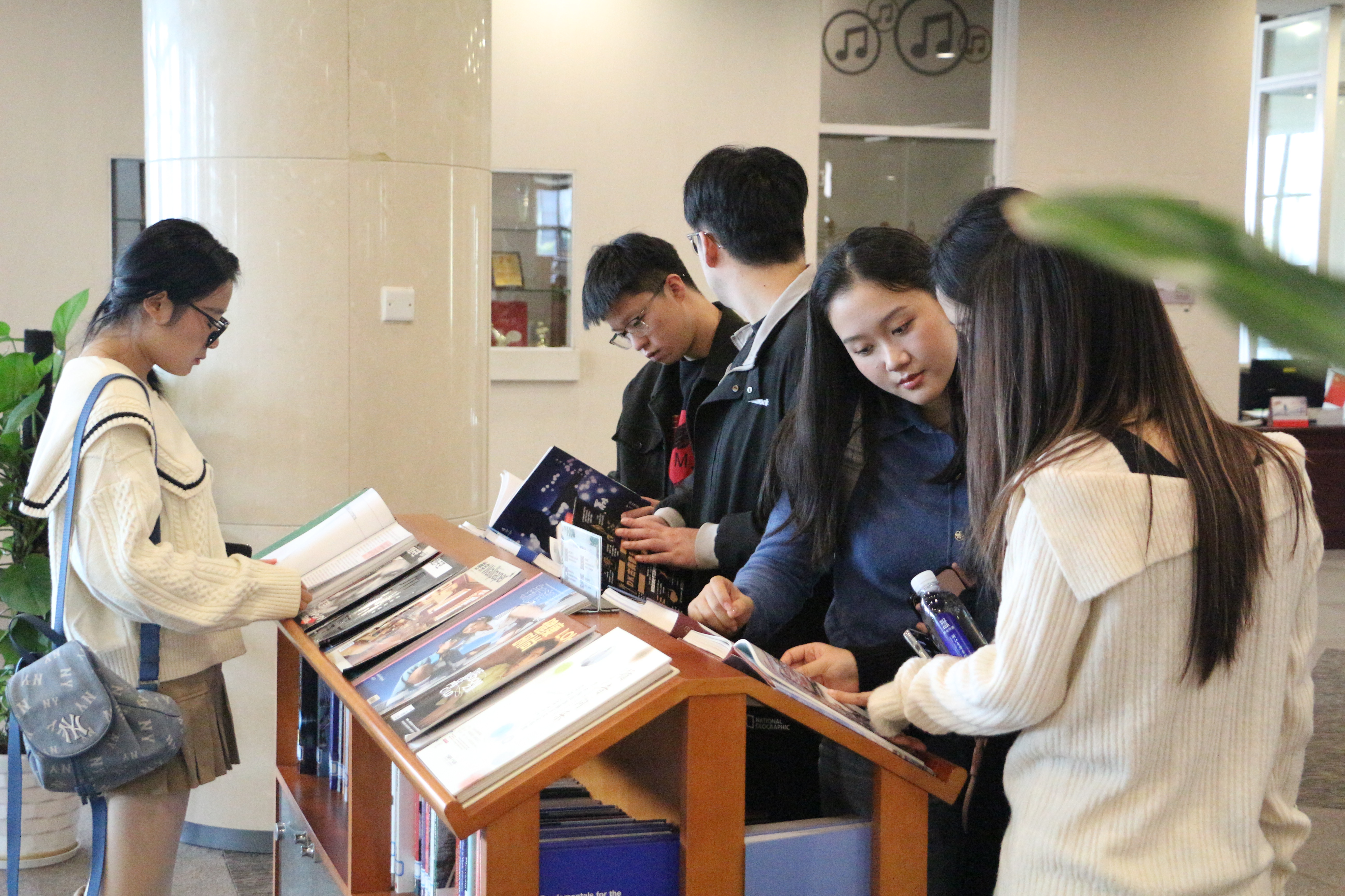 同学们在杭州图书馆音乐分馆负责人的带领下,参观了杭州图书馆的各个区域,体会了杭州图书馆的历史与魅力。大家着重参观了音乐分馆的自助阅览区和HI-FI音乐室,通过视听结合的方式对音乐分馆的馆藏文献、数字音频、设施服务及所开展的音乐活动等进行了了解。