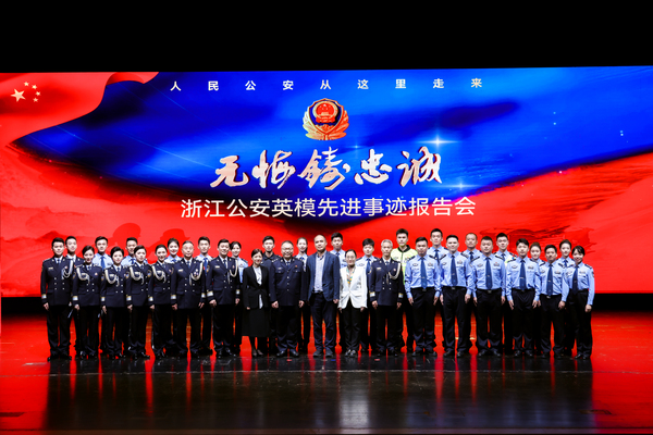 报告会紧扣“共富、共治、生态”三大警务精神主线,9组宣讲成员用一段段感人肺腑的“身边故事、警察故事、初心故事”,讲述了近年来浙江公安战线涌现出的具有典型代表性的公安英模感人事迹。逆行而上、解救群众的台州猫狸岭隧道“8·27”起火事故处置组,“最牛痕迹鉴定辅警”施群峰,在预防网络犯罪、影像、经侦等领域不断发起新攻坚的方瑜淳、翁燕敏、吴敬警,扎根基层、为民服务的罗家岙派出所海岛民警,他们始终把“人民至上”的理念镌刻在实际行动中,用坚守护佑群众,用奋斗回应时代。全国公安一级英模李本春(已故),入警后61年41次跳入江中,挽救43条生命。这样的身影遍布浙江,义乌公安的楼仁斌就是其中一位典型。作为2024“最美基层民警”候选人,9年间他曾救起溺水群众13人、参与救助群众118人,完成了一个又一个救援奇迹。活动现场,楼仁斌分享了自己第一次救人的经历,介绍了水上救生最小作战单元机制,并将新发明的水上救生腰带用法的经验分享给大家。忠诚的使命一棒接一棒,无悔的信念一代接一代。如今,新生代青年民警也站到了最前沿。正如8位95后“警营后浪”朗诵的《青春铸盾》,他们虽岗位各异,却共同肩负着守护浙江平安的重任,以青春之名,书写着忠诚与担当的藏蓝篇章。
