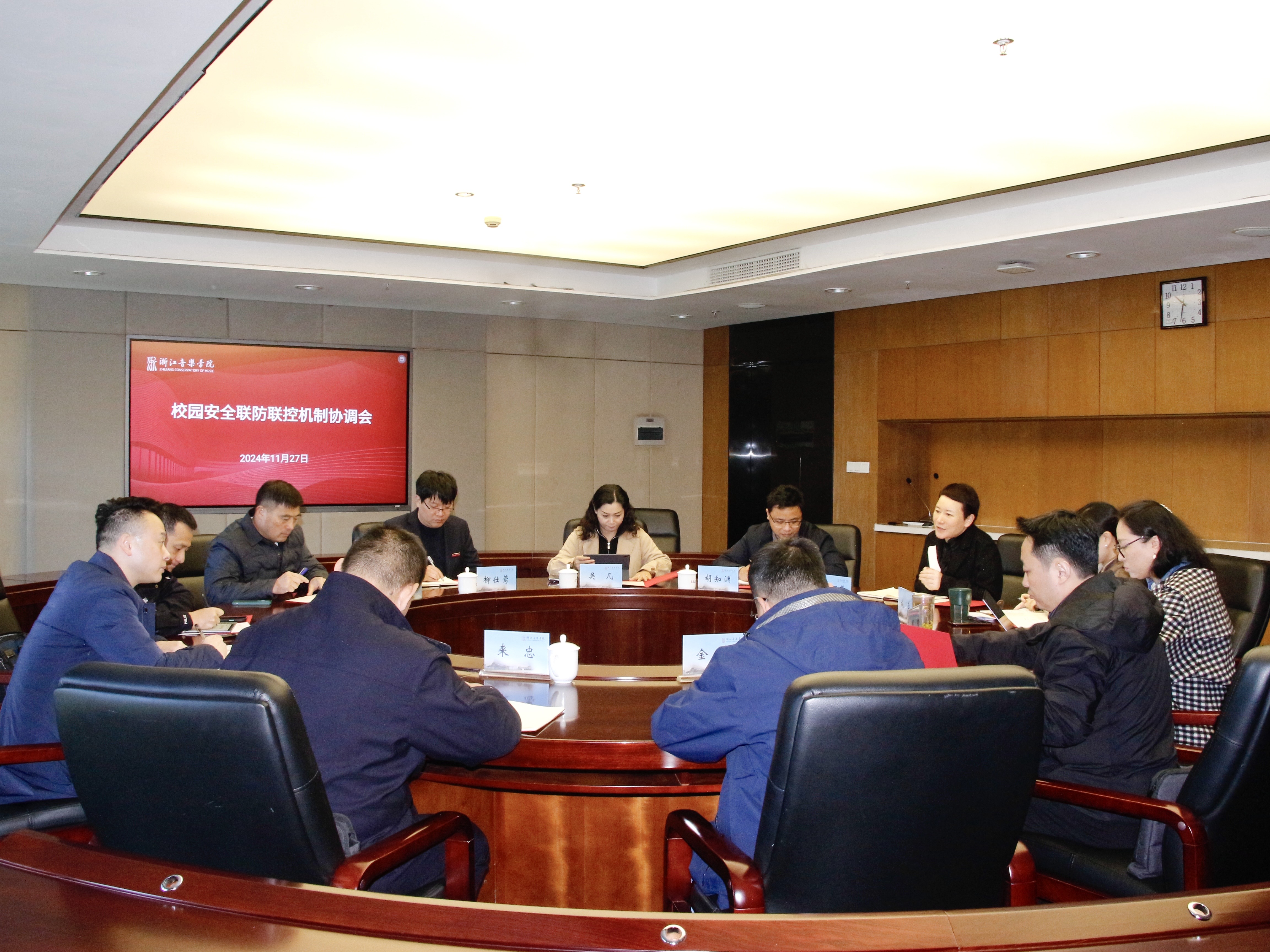 11月27日上午,学校召开校园安全联防联控机制协调会,副院长、党委委员、校园综合治理委员会副主任奚丽萍,党委委员、宣传部部长、教师工作部部长施莹出席,校园综合治理委员会相关成员单位负责人参加,转塘街道党工委委员江悠、派出所所长陈卓旻、交警中队中队长来忠受邀参加会议。