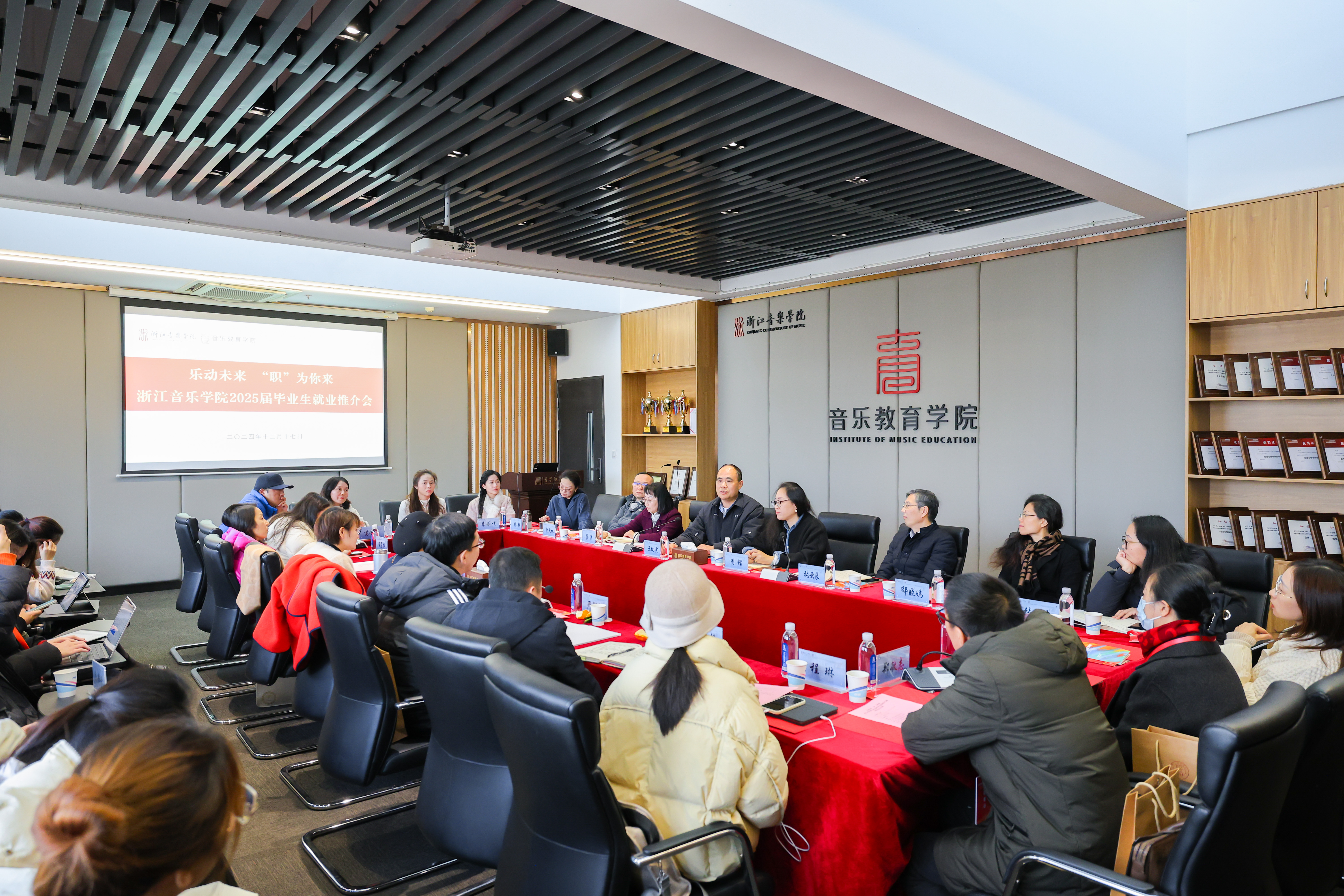 在就业推介会暨座谈会上,王均寅对各用人单位的到来表示欢迎,他希望与在座的用人单位建立长期交流合作机制,在人才培养、就业招聘等方面深度合作,拓宽学生实习实训平台和就业渠道,推动院校双方资源共享、优势互补,更好服务学生的高质量充分就业和成长成才。王均寅强调,面对严峻的就业形势,各院系应坚持“引进来”和“走出去”相结合,建立“人才库”,加强与用人单位的对接联络,广泛宣传和推介浙音优秀学子,为毕业生引荐更多就业岗位,同时,毕业生们也要转变就业观念,采取“先就业后择业”的策略,始终坚持“多能一专”,不断提高自身的综合素养,最终实现个人价值与职业梦想的双重飞跃。会上,音教学院负责人详细介绍了学院的历史沿革、教学师资、办学成果及专业人才培养的优势和特色。浙江师范大学附属丁蕙实验小学、杭州市余杭区英特外国语学校、宁波市镇海区艺术实验小学、台州市路桥实验中学等十余家单位负责人逐一介绍了各自学校的基本概况、发展历程及教师招聘需求、招考机制和政策、教师待遇与后期发展等情况。三位2025届毕业生代表也从在校学习、校外实习以及现阶段就业情况进行发言交流。此外,与会师生还探讨了当前音乐教育行业的发展趋势,交流了人才培养和就业模式的创新思路。
