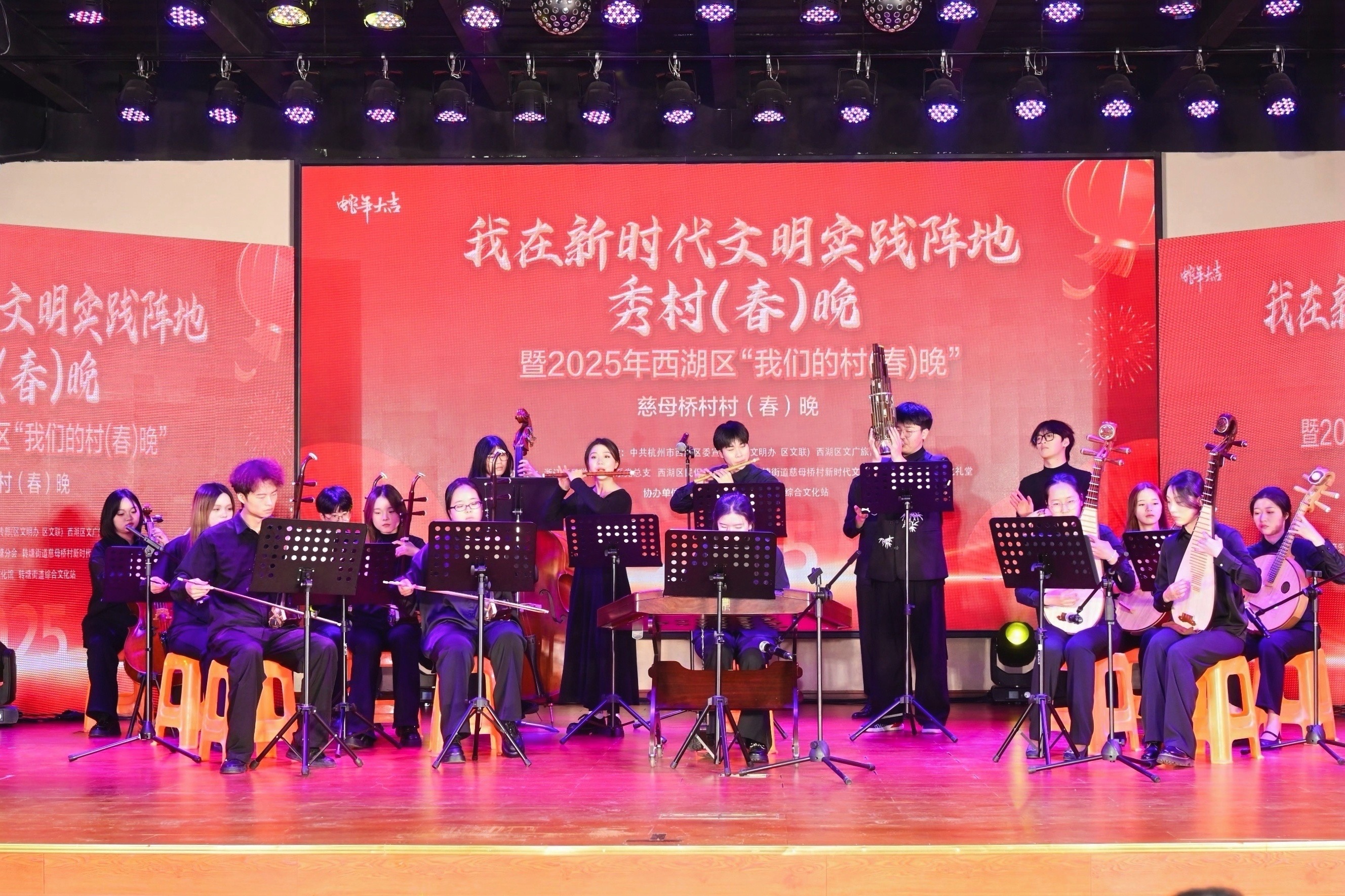 在本次春晚活动中,戏剧系师生精心准备了形式多样的节目。从悠扬的器乐合奏,到韵味十足的越剧联唱,再到热情洋溢的歌曲串烧以及灵动优美的舞蹈,各类节目精彩纷呈,充分彰显了戏剧系4个专业的办学水准与办学特色。同时,借助不同专业方向之间的紧密协作与交叉渗透增进了师生之间的交流互动,在强化专业知识融合、提升专业赋能效果以及全方位培养学生综合能力等诸多方面发挥了积极作用,为戏剧系的学科发展注入了新的活力。此外,演出中的村歌《念慈》舞蹈节目别具意义,它是戏剧系与慈母桥村党建共建合作的又一重要成果,是双方携手共进、协同发展的有力见证。
