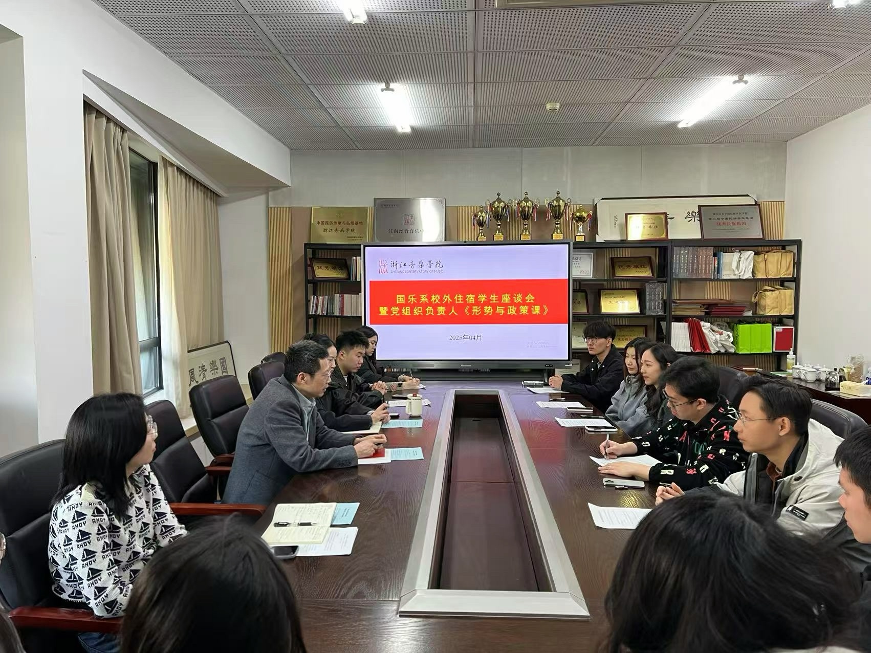 为提升学生安全管理工作的规范化,4月2日,国乐系组织召开校外住宿学生座谈会暨党组织负责人《形势与政策》专题教育课。系党总支书记、副主任李旭芳,副主任张咏音,辅导员及全体校外住宿学生参会。会议围绕思想引领、安全管理、学生意见征集等内容展开,旨在进一步强化法律法规和校纪校规教育,优化校外住宿学生教育服务。