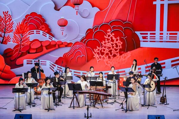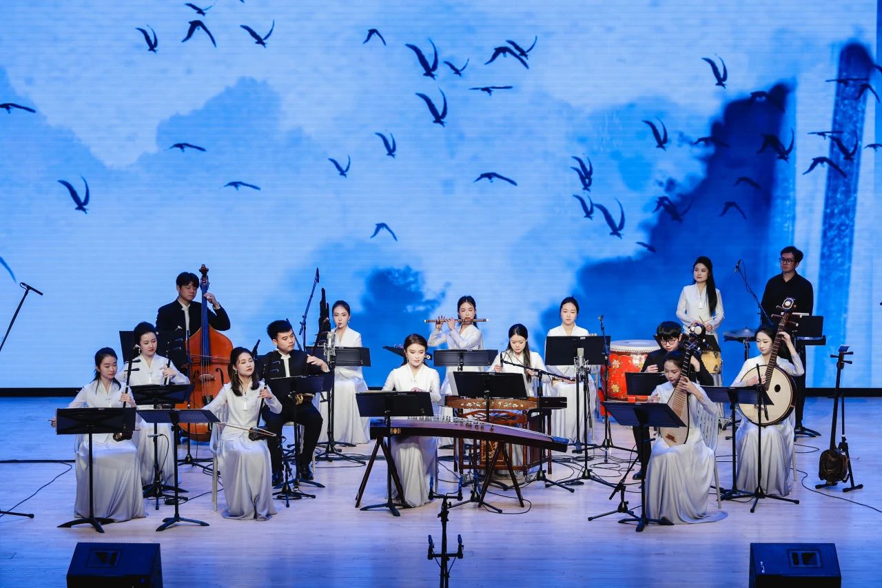 随后,乐团依次演奏了《诗雨江南》、《无锡景》、《杨柳青》、《三五七》等江南经典曲目,仿佛让人置身于烟雨朦胧的江南水乡,旋律似潺潺溪流,淌入人心。