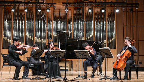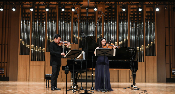 音乐会在宁峰与黄秋宁两位演奏家联袂演奏的贝多芬F大调第五小提琴与钢琴奏鸣曲《春天》中拉开帷幕。两位演奏家的演奏珠联璧合,音色华丽而不失优雅,征服了在场的每位观众。随后,田益民、王晓通、郑欣、田泽辉和盛义淳5位同学为观众带来W.A.莫扎特的《降E大调钢琴木管五重奏》,高水平的演奏将莫扎特特有的活泼灵动发挥得淋漓尽致。中场休息后,宁峰、刘瓅元两位演奏家带来了亨德尔的《帕斯卡利亚舞曲》,中提琴与小提琴在两位演奏家的手中,音色和谐且各具特色,令观众们醉心其中。王宇萌、杨双祎、张馨日3位同学演奏的W.A.莫扎特谱的《降E大调单簧管、中提琴、钢琴“卡格斯塔特”三重奏》也相当精彩,音乐风格鲜明、表现形象生动。音乐会最后一部作品,是由邵润泽、杨晨阳、倪汉文、陈珂然和王心宇5位同学演奏的舒曼《Piano Quintet in E flat Major》(Op.44),优美的乐曲在音乐厅回荡共鸣,感染力十足。