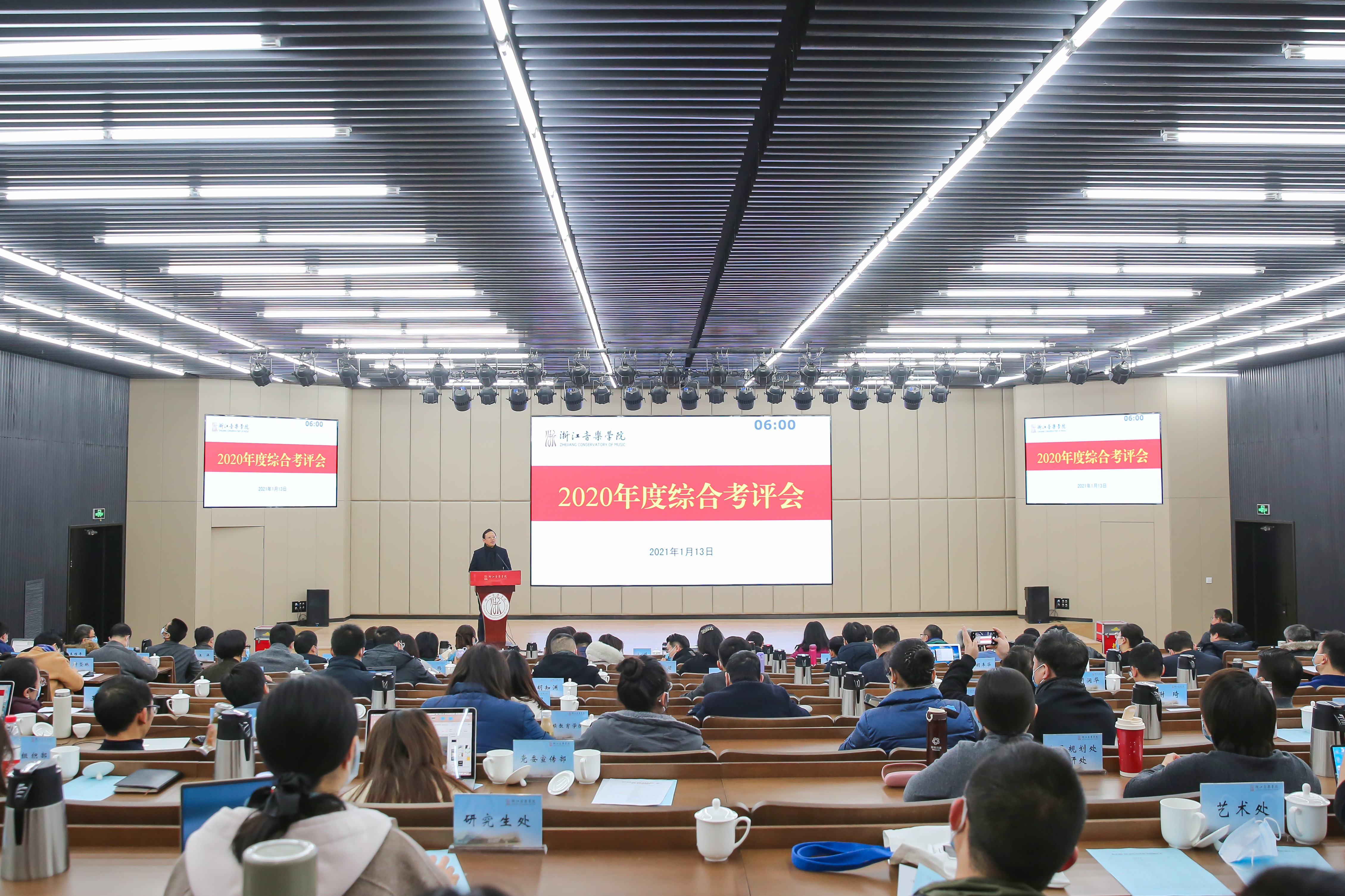 王瑞在总结讲话中指出,2020年,在学院党委的坚强领导下,各单位、部门以及全体师生员工奋力抗击疫情,全力推进改革创新,取得了“两手硬、两战赢”的出色成绩,学院综合实力进一步提升,社会影响力进一步扩大,每位浙音人都很了不起。结合学院发展实际及面临的新形势、新挑战,他强调,2021年是建党100周年,也是学院“十四五”发展新征程的开局之年,要进一步强化系统观念、系统思维,加强顶层设计,注重战略谋划和战术布局,扎实推进各项重点工作,为学院未来发展谋好篇、布好局、开好头。一要科学谋划“十四五”规划和2021年工作。要全面对标对表中央十九届五中全会和省委十四届八次全会精神,围绕“重要窗口”建设,紧密结合学院实际,精心谋划、精密部署,开门问策、集思广益,高质量完成“十四五”规划编制工作。要进一步深化改革、创新发展,加强内涵建设,构建完善现代大学治理机制,扎实做好第五轮学科评估、2022年本科教学合格评估准备、深化教学改革、重大题材艺术创作与演出等重点工作,以优异的成绩庆祝建党100周年。二要慎终如始做好校园疫情防控工作。全院师生要时刻保持清醒头脑,慎终如始,严防侥幸心理;压实责任,落实防控举措;统筹协调,保证师生安全离校;提前谋划,确保新学期顺利开学。三要认真细致做好寒假前后相关工作。要防患未然,高标准、严要求,扎实做好寒假期间招生考试、安全稳定、廉洁过节等各项工作。