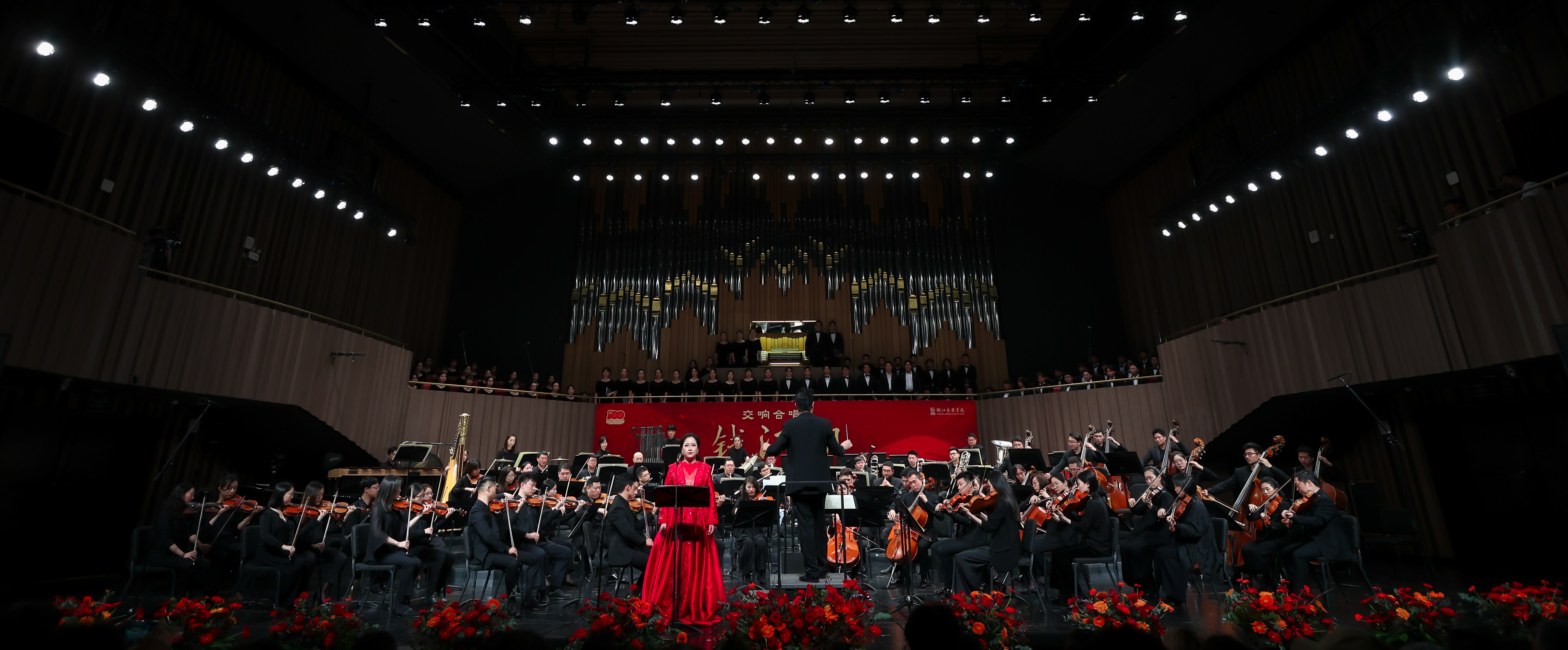 5月28日晚,学院为庆祝中国共产党成立100周年而倾力打造的原创音乐作品——大型交响合唱《钱江潮》在周颖音乐厅精彩上演。学院师生联合杭州爱乐乐团,立足钱江大地百年潮涌,为广大观众合力奉上了一场视觉与听觉的双重盛宴。学院党政领导班子成员胡建新、王瑞、贾秀英、杨九华、张伟波、李俊等与师生代表共400余人观看了演出。