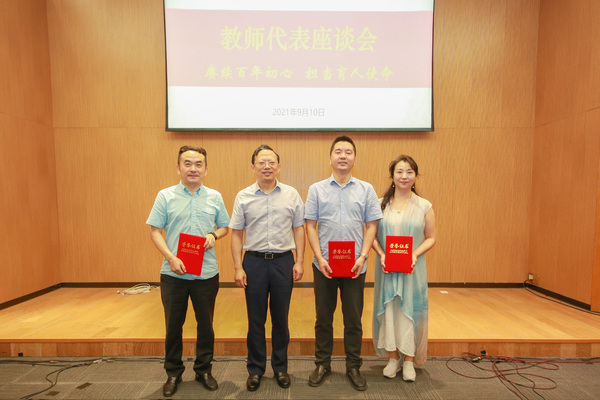 9月10日,正值第37个教师节,学院举行以“赓续百年初心,担当育人使命”为主题的庆祝第37个教师节暨教师代表座谈会。学院党政领导班子成员胡建新、王瑞、贾秀英、王均寅、张伟波、奚丽萍、李俊出席座谈会,从教30年以上教师、优秀中青年教师代表、新入职教职工代表参加座谈会。会议由党委副书记王均寅主持。