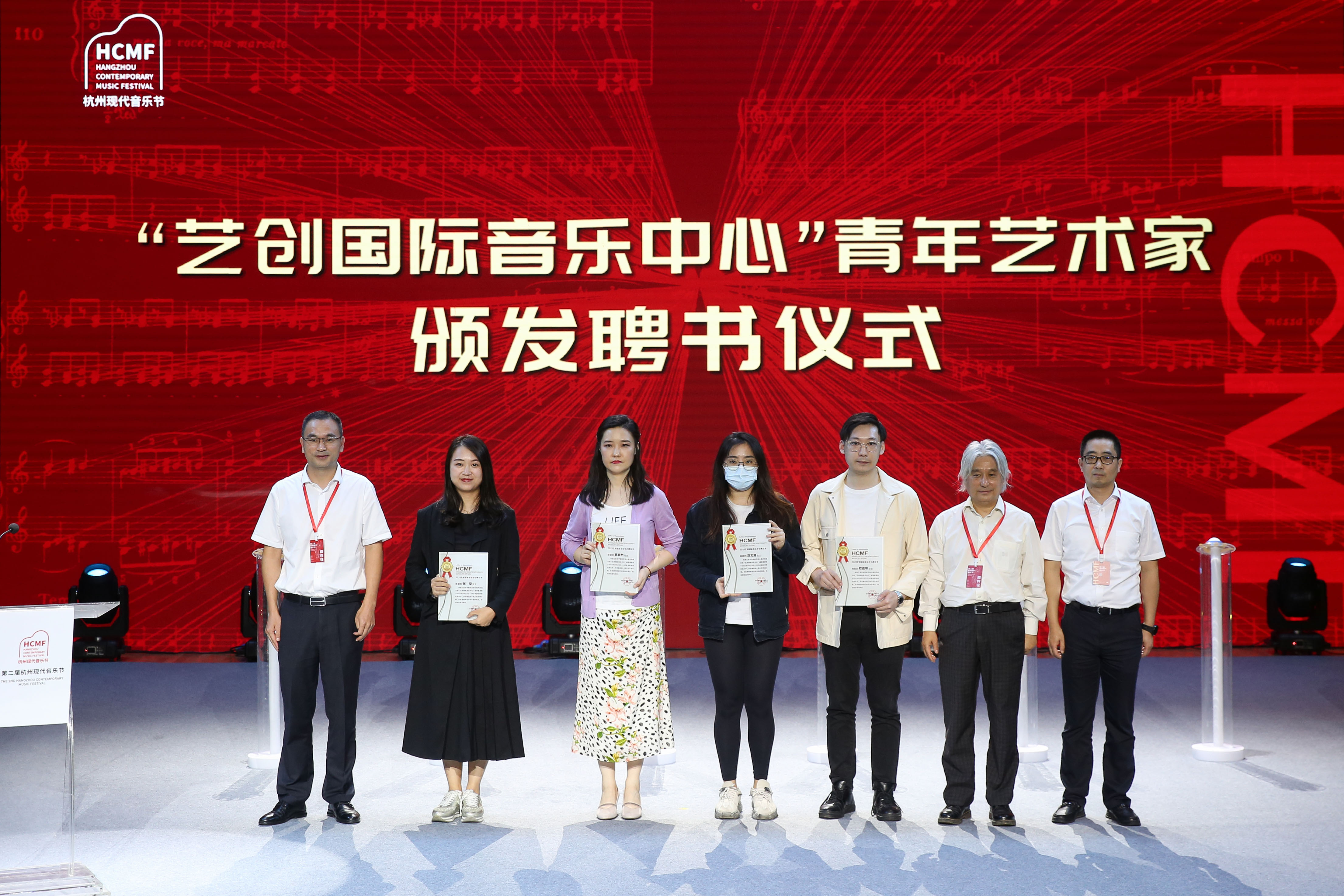 学院副院长杨九华、汪洋,艺创小镇党委书记、主任王盛为即将入驻“艺创国际音乐中心”的4位青年艺术家颁发聘书。