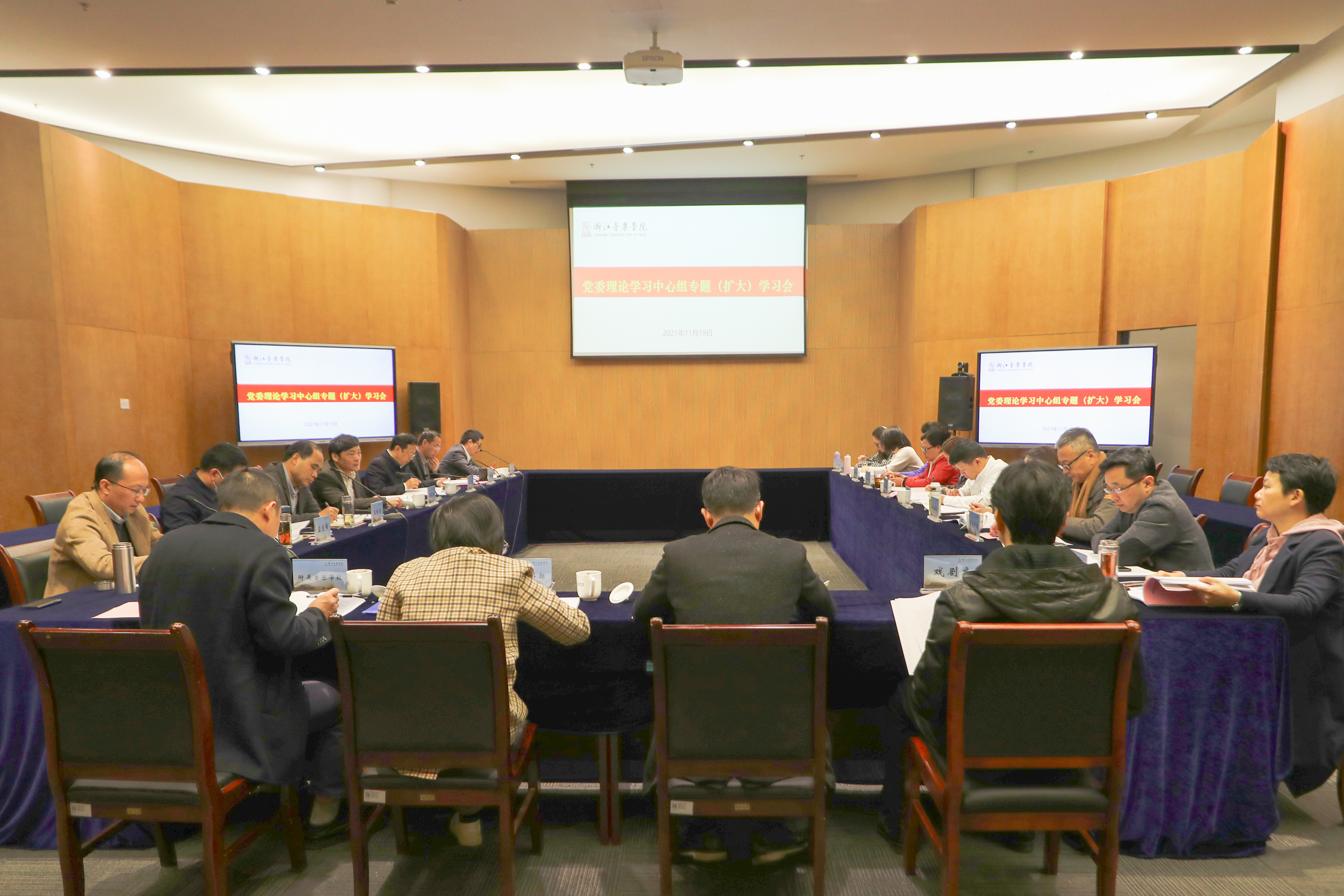 11月19日上午,在组织师生观看党的十九届六中全会精神发布会现场直播、党委会专题学习十九届六中全会精神的基础上,学院召开党委理论学习中心组(扩大)专题学习会,深入学习贯彻党的十九届六中全会精神。学院党委书记胡建新主持会议并讲话。学院全体党政班子成员参加学习会并作交流发言。