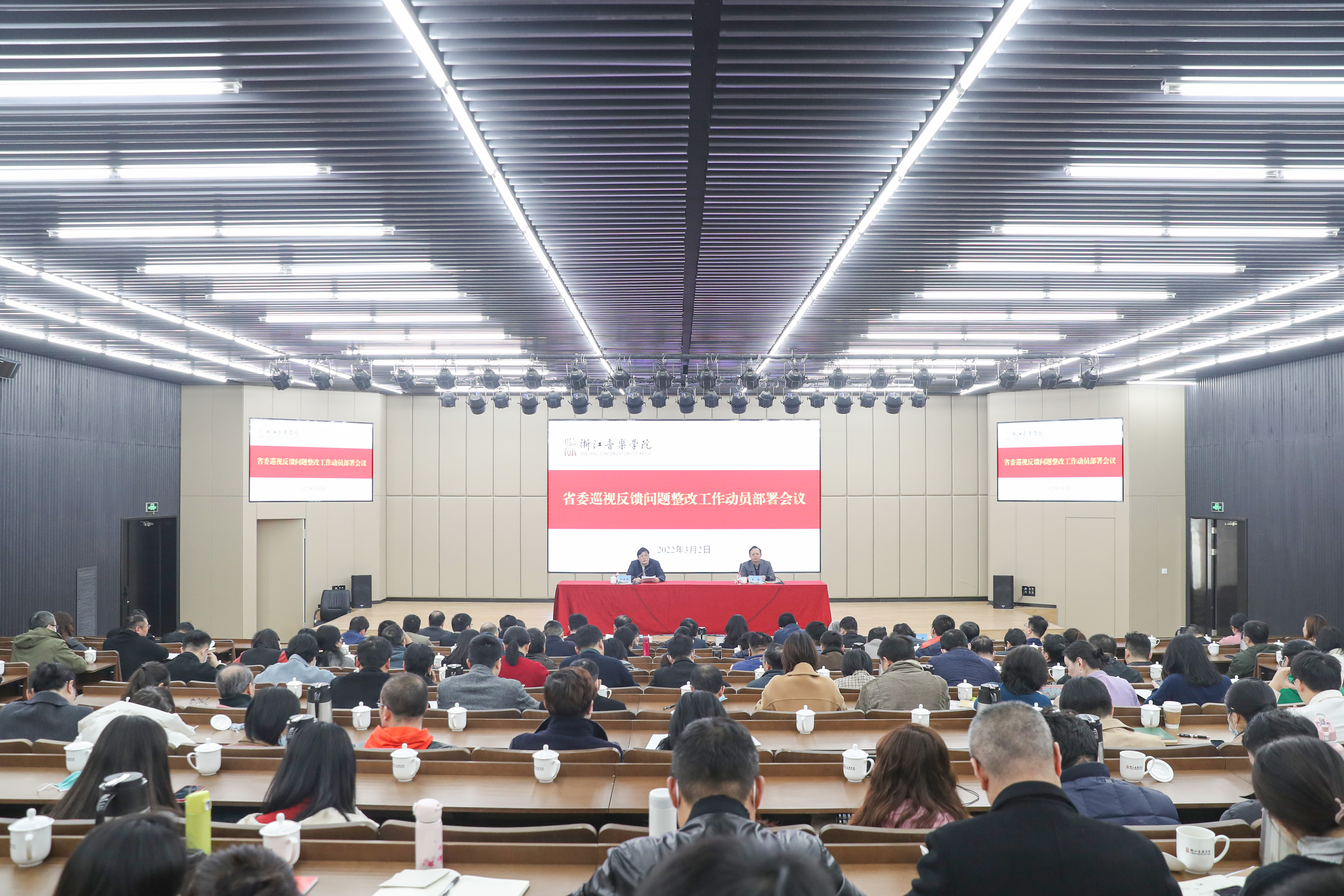 胡建新在讲话中指出,省委巡视是对学院各项工作的“全面检阅”和“政治体检”,反馈意见充分肯定了学院的工作成效,也实事求是、一针见血地指出了学院存在的问题和不足,提出的意见和建议对于学院发展具有很强的指导性、针对性、操作性。我们要深入学习贯彻习近平总书记关于巡视工作的重要论述精神,认真贯彻落实省委关于巡视整改的决策部署,进一步强化思想认识、明确整改任务、压实整改责任,动员全校师生员工,提振精神、鼓足干劲、凝心聚力,共同答好巡视整改这份“政治必考卷”,以整改促规范,以整改促提升。一要提高政治站位,充分认识做好巡视整改工作的极端重要性,做到三个“深刻领会”,即深刻领会巡视整改是拥护“两个确立”、做到“两个维护”的具体体现;深刻领会巡视整改是推动学院发展的重要契机;深刻领会巡视整改是落实全面从严治党战略部署的重要抓手。二要坚持问题导向,坚决把巡视反馈问题全面彻底整改到位,特别是要学深悟透习近平总书记关于教育和文艺工作的重要论述精神,严格落实意识形态工作责任制,不断推动全面从严治党向纵深发展,深入贯彻落实新时代党的组织路线,加快推进学院高质量发展。三要坚持从严从实,增强守土尽责的履职担当,要强化主体责任,坚持“挂图作战”,强化跟踪督查,健全长效机制。最后,胡建新强调,做好省委巡视反馈意见整改是党的纪律要求,是检验党员干部是否对党忠诚的试金石,也是推进学院事业健康发展的根本保证。我们要严格按照省委要求和省委巡视组的反馈意见,以强烈的政治责任感,对标对表,狠抓落实,以实实在在的整改成效推动学院高质量发展,向省委、省委巡视组和全校师生员工交上一份满意答卷,以优异成绩迎接党的二十大、省第十五次党代会胜利召开。