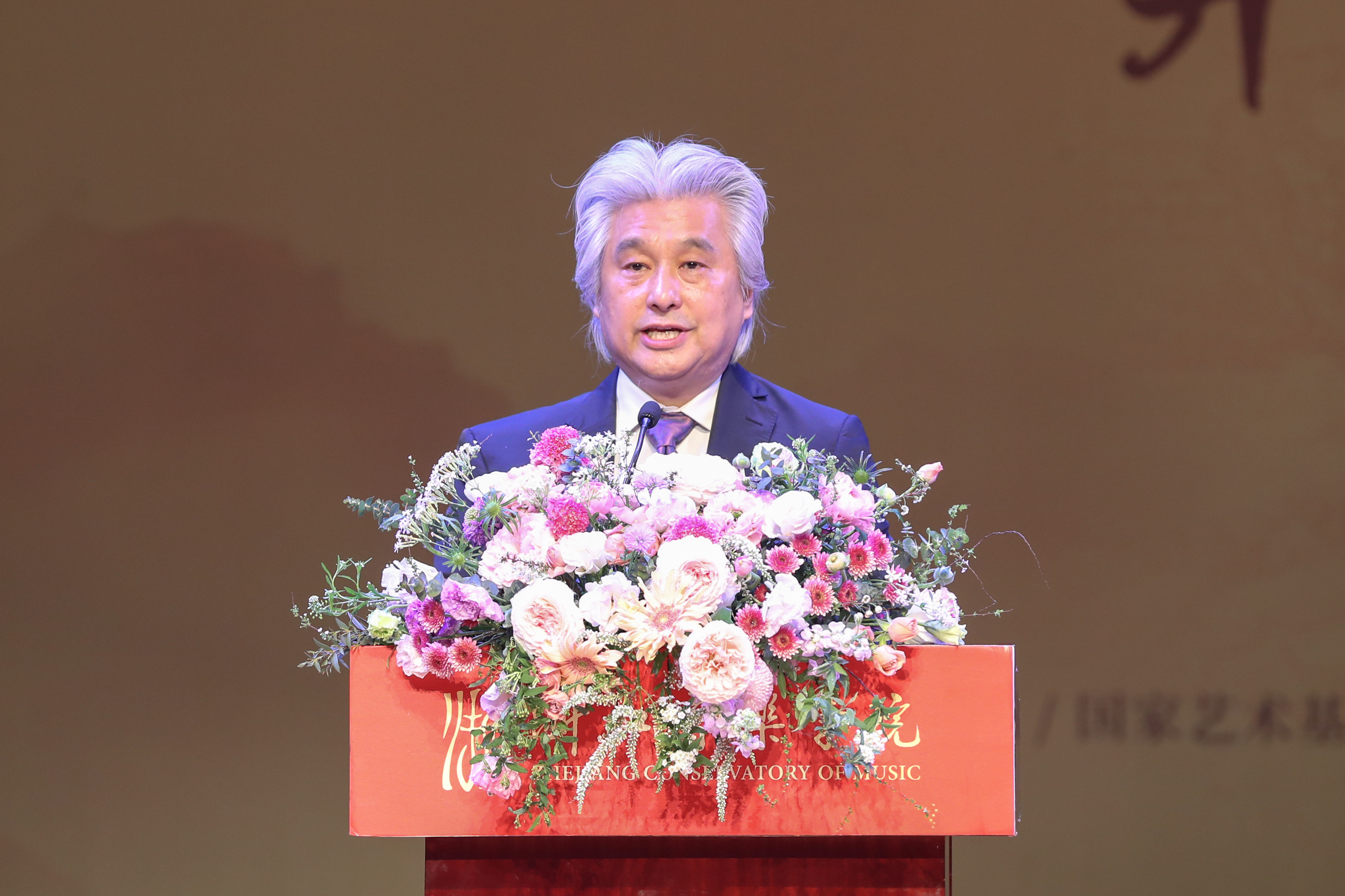 王瑞致欢迎辞。他从中国传统礼乐文化出发,深入阐释传承弘扬中国音乐文化、增强文化自信的重要性,指出该项目通过培养提升学员精湛的专业演奏技艺、优秀的人文综合修养、高度的民族文化自信和守正出新的创造精神,着力增强青年民族器乐表演人才的综合素质和能力,让他们能够行稳致远,成为新时代民族器乐演奏的领军人才,这对传承和发展民族器乐演奏这一中华优秀传统文化表现形式具有重要意义,也是浙音坚持中华优秀传统文化和民族音乐的传承创新、推动民族音乐人才的高水平培养与中华美育精神赓续传承的重要体现。