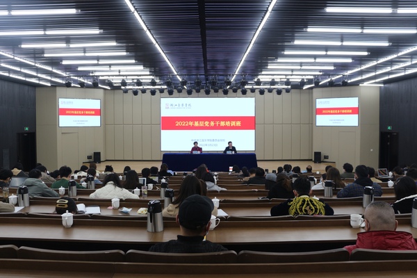 3月23日,学院举办2022年基层党务干部培训班。学院党委副书记贾秀英作开班动员讲话,党委委员,组织部、统战部部长奚丽萍主持开班仪式。各二级党总支书记、副书记、组织委员、宣传委员、组织员,基层党支部书记、组织委员、宣传委员等共110余人参加培训。