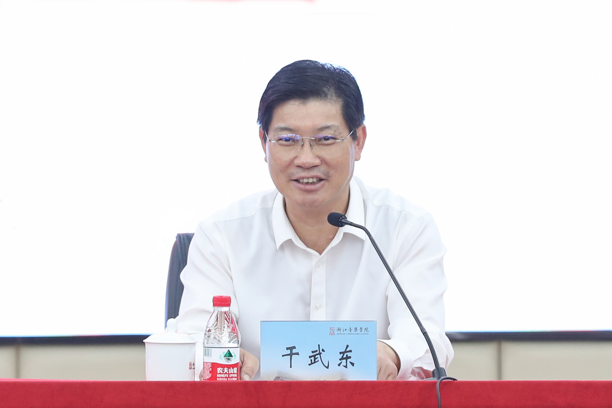 干武东在总结讲话中指出,葛学斌副部长的报告主题鲜明、内涵丰富、通俗简明,既有理论的梳理,又有实践探索与丰富案例,对于全校上下进一步深刻把握习近平总书记关于文艺的重要论述精神,推动学院文艺创作再上新台阶,主动助力新时代文化浙江“五个高地”建设,具有很强的指导意义。他就贯彻落实好习近平总书记关于文艺工作的重要论述精神提出三点意见。一是在浙江文艺精品创作中主动担当作为。必须进一步提高政治站位,学深悟透习近平总书记关于文艺工作的重要论述精神,心怀“国之大者”,牢固树立窗口意识、前列意识、争先意识,在全省文艺精品创作中主动担当、积极作为,整合学院各类优势资源扎实推进重大文艺精品创作工程,努力创作一批体现时代高度、富有时代标识、思想性艺术性相统一、在全国有一定影响力的重大文艺精品力作,着力将学院打造成为浙江“重要窗口”建设金名片、文化高地生力军和展示浙江形象的新标识,为浙江打造“重要窗口”、高质量发展建设共同富裕示范区贡献浙音力量。二是加强重大文艺精品创作的系统谋划。要加强组织引导、完善工作机制、找准方法路径,通过体制机制和方式方法的创新,以系统观念和系统方法加强文艺精品创作的顶层设计,进一步明确工作目标,统筹抓好选题规划,注重开放互动、内聚外联,切实做好全工作流程的资源保障和指导监督,强化责任落实,扎实推进重大文艺精品创作计划落地见效。三是注重上下联动、内外协调。要充分发挥学院的学科专业、人才资源和艺术资源整体优势,按照“每年有突破、两年大提升、五年开新局”的要求,注重整合校内外各方面力量,有计划、有步骤地整体推进。各系部(学院)及相关职能部门要做好艺术创作及相关服务保障工作,形成全校上下一盘棋的工作新格局,推动学院重大文艺精品创作再上新台阶,取得新成效。