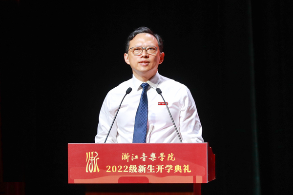 他指出,大学之大在于“精神”之大、在于“学问”之大、在于“先生”之大、在于“学生”之大,在于海纳百川、有容乃大之气度,在于美美与共、和而不同之境界,在于自由精神、独立人格之理想,在于宏阔学术、求实创新之品格,在于“苟利国家生死以,岂因福祸趋避之”之情怀。他表示,作为创立于新时代的现代化艺术大学,除了具备大学应有的品格外,浙音之大在于“艺术”之大,在世界面临前所未有之大变局的今天,要追求让艺术始终焕发出真善美的人性光芒和人之所以为人的真理力量,成为人们心中永远的诗和远方;浙音之大在于“理想”之大,要始终坚持人民中心的艺术立场,立足新发展阶段,贯彻新发展理念,解放思想,创新实践,办高水平一流音乐学院,培养德艺双馨的艺术人才。最后,他深情寄语同学们追寻“事必尽善”校训指引,立大志、明大德、成大才、担大任,奋发有为,不负韶华,以优异的成绩抒写无愧于时代无愧于人民的青春华章。