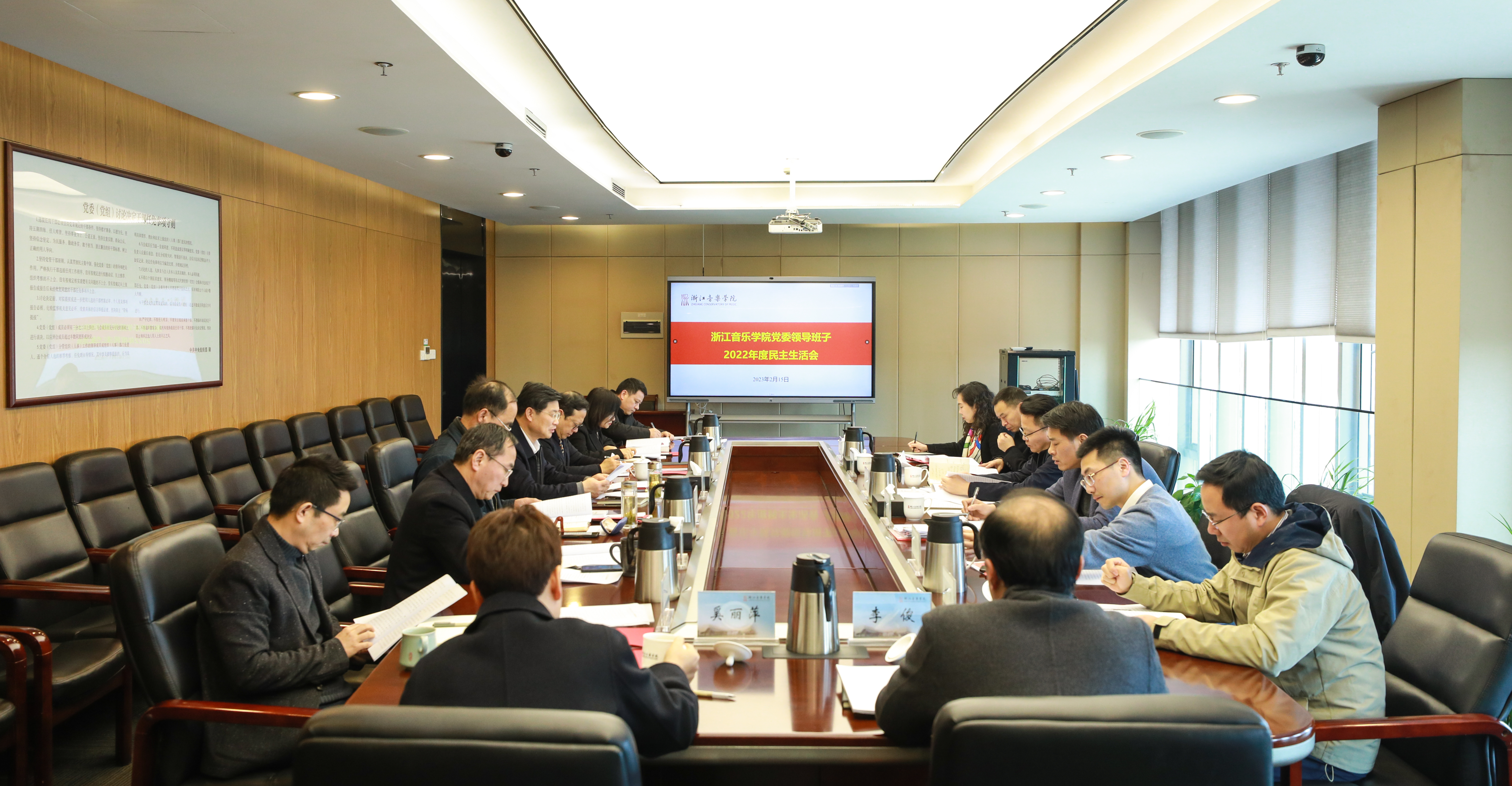 在认真听取学院党委班子对照检查和班子成员发言后,陈广胜充分肯定了学院民主生活会的质量成效和近一年来学院办学取得的显著成绩,并对下一阶段学院工作提出了具体要求。他强调,浙音作为我省唯一一所音乐艺术高校,要紧紧围绕省委、省政府的决策部署,主动对标对表,在提升办学实力上再突破、在人才培养模式上求突破、在精品创作和文艺惠民上谋出圈、在现代高校治理上讲创新、在安全管理上筑根基,积极把握改革发展机遇,深刻理解教育的重要地位和艺术的初心使命,不断推动共同富裕中的教育艺术担当与作为,以高质量发展实现浙音建设新跨越。