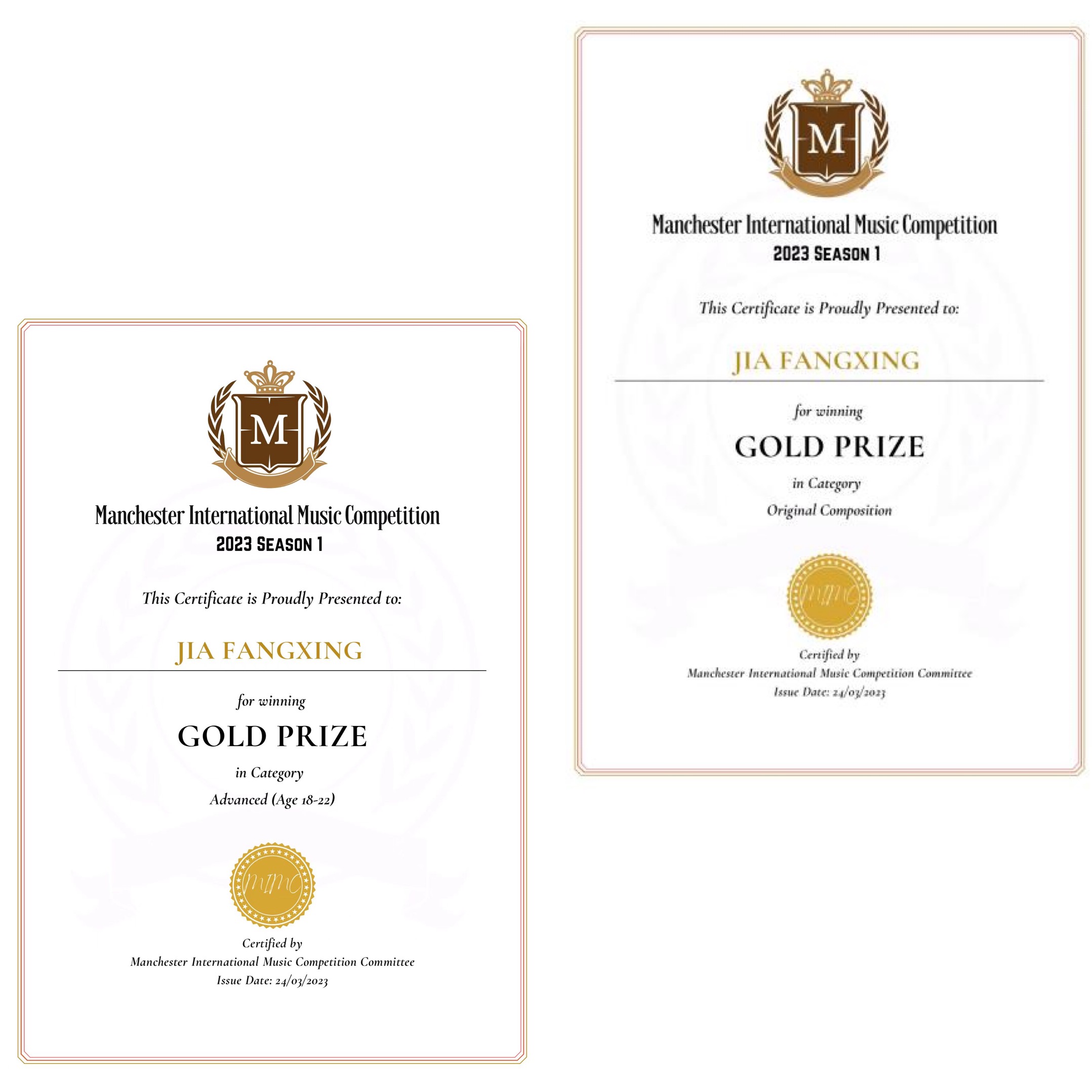 近日,来自音乐工程系音乐设计与制作专业2021级本科生贾方兴的作品Titmice Suit No.3 Survival Game《山雀组曲Ⅲ 鹰口逃生》(指导老师:姜超迁)一举获得英国曼彻斯特国际音乐比赛(Manchester International Music Competition)作曲组、高级组(18-22岁)两项金奖。