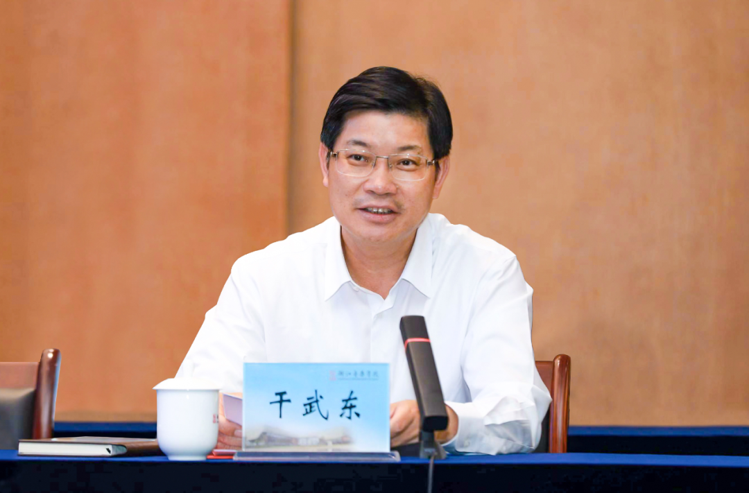 干武东就如何深入学习贯彻习近平新时代中国特色社会主义思想,强力推进改革、创新、开放,以更大的力度、更实的举措、更靓的成效,助力共同富裕示范区建设,加快打造“高水平一流”音乐学院提出三点要求。一是要在共同富裕示范区建设的大场景中强化“高水平一流”音乐学院建设的使命与担当。学院要在主动对接服务国家、省委重大战略上、在重大文艺精品和主题歌曲创作上、在服务共同富裕示范区建设中持续发力,通过亚运会、亚残运会的高质量演出和服务保障,创作艺术水准高和社会影响力广的重大文艺精品力作,优化、整合与提升文艺惠民活动,交出打造浙江全域文化繁荣全民精神富有的浙音高分报表。二是要在主题教育的生动实践中深化锚定“高水平一流”音乐学院建设的目标与路径。学院要以此次主题教育为契机,咬定“高水平一流”目标不动摇,深入开展“大走访大调研大服务大解题”活动,在真调研、广调查、深研究中注重问题导向,深刻剖析问题背后的深层次原因和根本性症结所在,真正做到有的放矢、对症下药;在校内查找自身问题、校外调研交流中主动对标检视,借鉴优秀院校的丰富办学经验和先进做法,真正做到吸收转化、为我所用;在破解难题、推动发展中强化建章立制,以系统观念和系统方法解决问题,真正做到整体跃升、提质增效。三是要在比学赶超的砥砺奋斗中不断打造“高水平一流”音乐学院建设的硬核成果。推动浙音高质量发展的关键是人,核心是要形成人人比学赶超、人人争创一流的干事创业氛围。全面推进比学赶超就是要强化比学赶超意识、落实争先创优责任、坚持服务师生为本的思想,以“争表率、创示范、当先进”为共同目标,以不畏浮云遮望眼的豪迈跑出笃定前行的“新姿态”,以重整行装再出发的姿态跑出制胜未来的“主动权”,为助力“高水平一流”音乐学院建设提供取之不尽、用之不竭的源泉和动力。