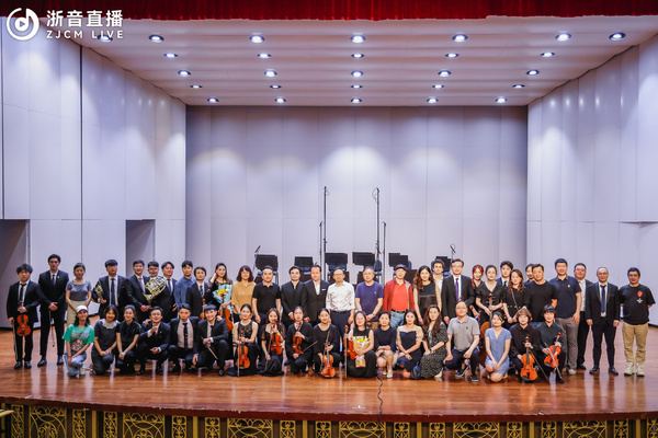 音乐会下半场由学院室内管弦乐团带来罗西尼歌剧《布鲁斯基诺先生》序曲以及莫扎特《g小调第二十五交响曲》(KV.183)。室内管弦乐团是一支隶属于学院的高水平职业乐团,也是中国第一支以室内乐为建制的职业管弦乐团。乐团特邀旅德指挥家焦阳担任艺术总监,乐团成员也由来自于国内外的优秀音乐家、独奏家组成,他们以精湛的演奏技巧共同追求着精致而富有活力的管弦齐鸣。乐团首先演绎了《布鲁基诺先生》序曲,瞬间点燃了下半场的情绪。作品的演奏摒弃了传统意大利式的粉饰风格,以趣味盎然的思维,诠释着人们在现实中时而窘迫失控、时而欢乐热闹的生活面貌。接下来是本场音乐会的最后一曲、莫扎特的经典之作《g小调第二十五交响曲》。g小调的旋律洋溢着一种忧伤的气息,尽管偶尔的抒情段落令人感到片刻的轻松,但稍纵即逝,无疑是对莫扎特的永恒解读与纪念,同时也是对经典的回望与致敬。曲毕,闭幕式音乐会在欢呼与雀跃声中圆满落幕。