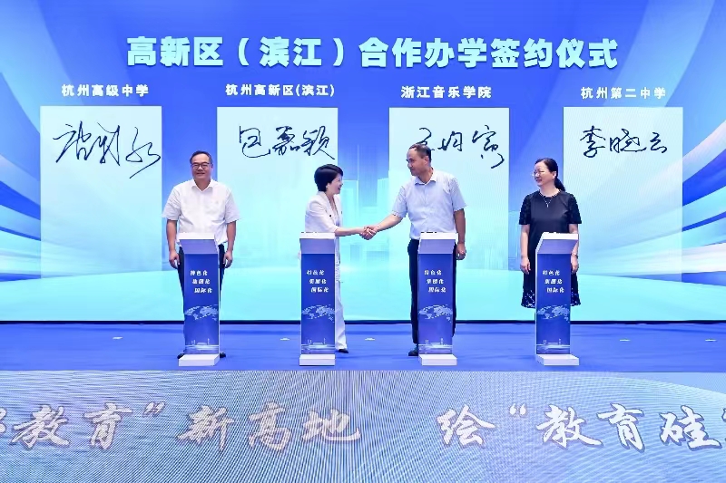 学院与滨江区全面开展合作办学,标志着浙音附属音乐学校实现“民转公”后,以“1+X”模式的集团化办学取得新进展。合作办学将为学院服务区域文化建设、拓展师生实习展演和就业创业等提供更宽阔的平台。