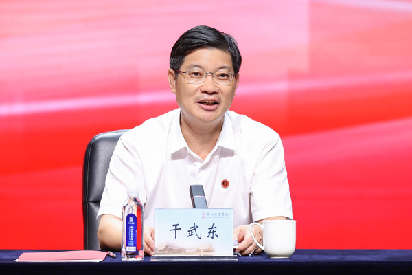 党委书记干武东在大会上作题为《振奋精神 鼓足干劲奋力开创高质量发展新格局》的讲话。干武东对暑假期间坚守奋战在各自的岗位上干部师生表示了诚挚的慰问、崇高的敬意和衷心的感谢!对扎实推进下半年工作提出了希望和要求。一是肯定成绩,振奋精神,继续保持良好发展势头。教育强国、高教强省战略以及共同富裕先行和省域现代化先行为浙音的发展提供了强劲动力和无限空间,我们要抓住机遇、增强发展动力,开放办学、激发发展活力,坚定信心、保持发展定力,“咬定青山不放松”,“不破楼兰终不还”,精准发力,推动学校持续快速健康发展。二是锚定目标,善谋实干,奋力推进“高水平一流”建设。浙音已经进入“二次发展”新征程,站在高原向高峰冲刺,接下来的路只会更加崎岖、更难攀走,更需要我们静下心来深思熟虑、科学谋划,全面加强内涵发展,持续深化创新发展,着力突显特色发展,认认真真下好每一手,踏踏实实迈好每一步,日积月累、厚积薄发,直至最终登顶山峰、精彩蝶变。三是党建引领,多元共治,凝聚高质量发展合力。全校上下要迅速行动起来,以党建为统领,践行“弘毅尚德、博约精艺”价值理念,充分发挥示范表率,着力提升服务保障水平,切实加强协同协作,心往一处想、劲往一处使、拧成一股绳,实干争先、实干创优,强力推进学校各项事业,奋力在“高水平一流”发展新征程上取得新的突破和新的跨越。