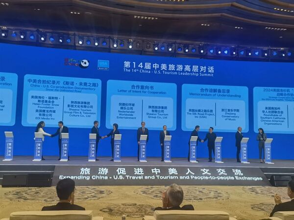 国务委员谌贻琴出席开幕式,宣读习近平主席致本届高层对话的信并致辞,美国商务部助理部长格兰特·哈里斯宣读美国总统拜登的致信并致辞,陕西省委书记赵一德致欢迎辞,文化和旅游部部长孙业礼主持开幕式并致辞。会议期间,中美双方城市、机构和企业签署了25份合作备忘录,旨在深化中美人员互访,增加旅游流量,为两国人文交流注入新动力。