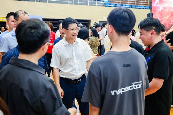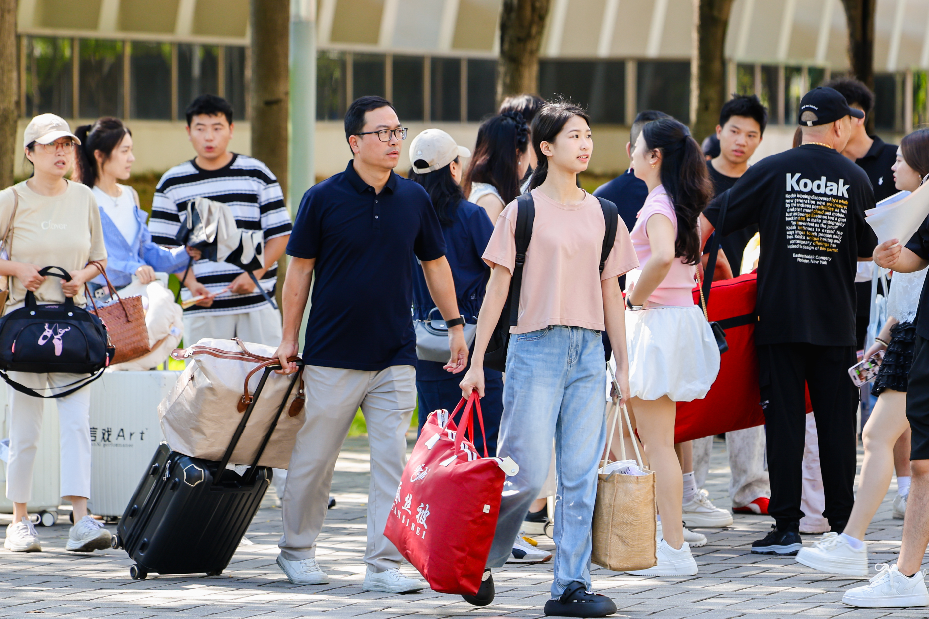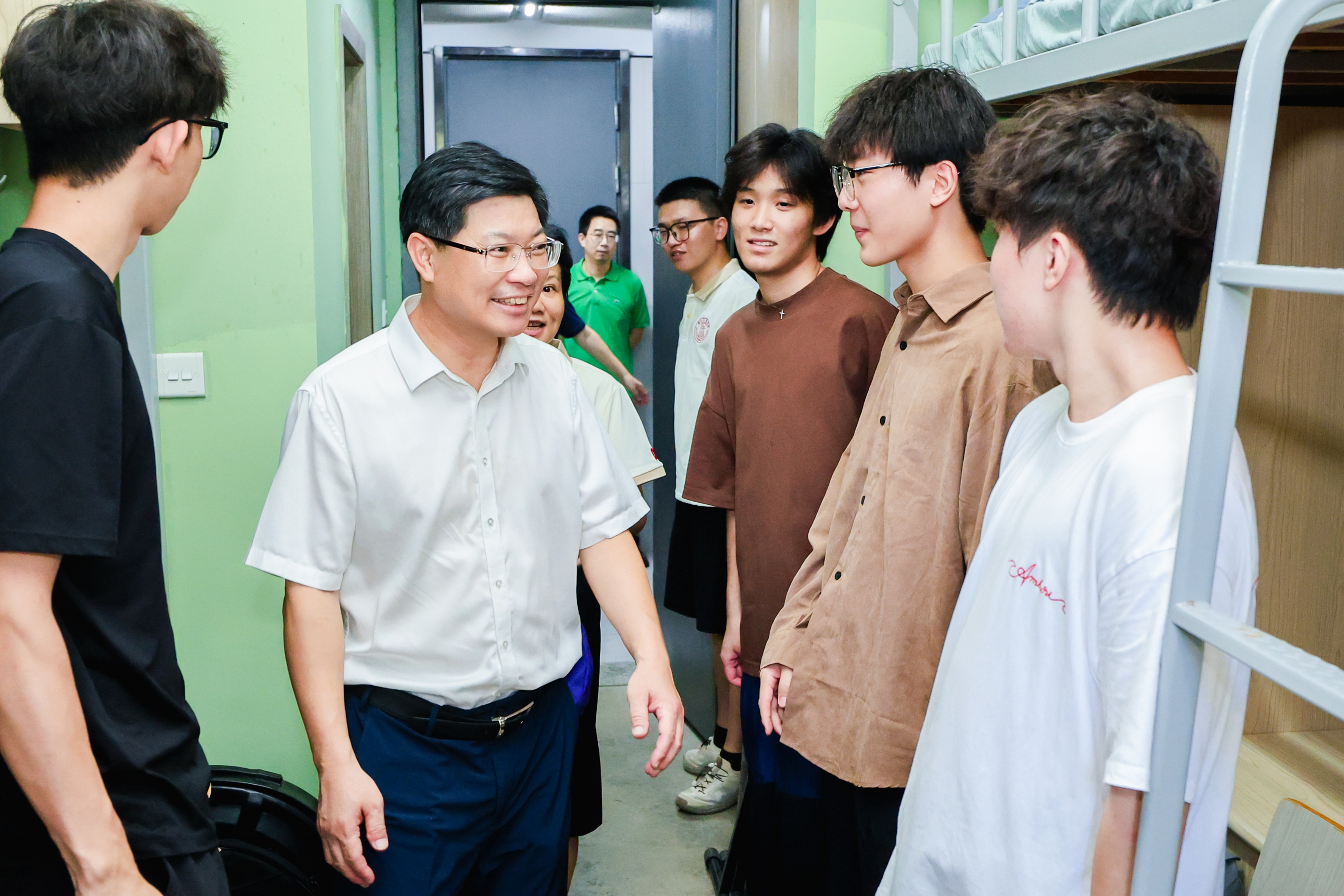 学院党政领导班子成员干武东、王均寅、汪洋、奚丽萍、董德君、李俊、施莹及相关部门负责人来到迎新报到现场,向新生表示热烈欢迎,与他们亲切交流,并慰问了现场工作人员与志愿者。随后,学院领导一行来到公寓,探望初入校园的新生,传递学校的殷殷关怀。