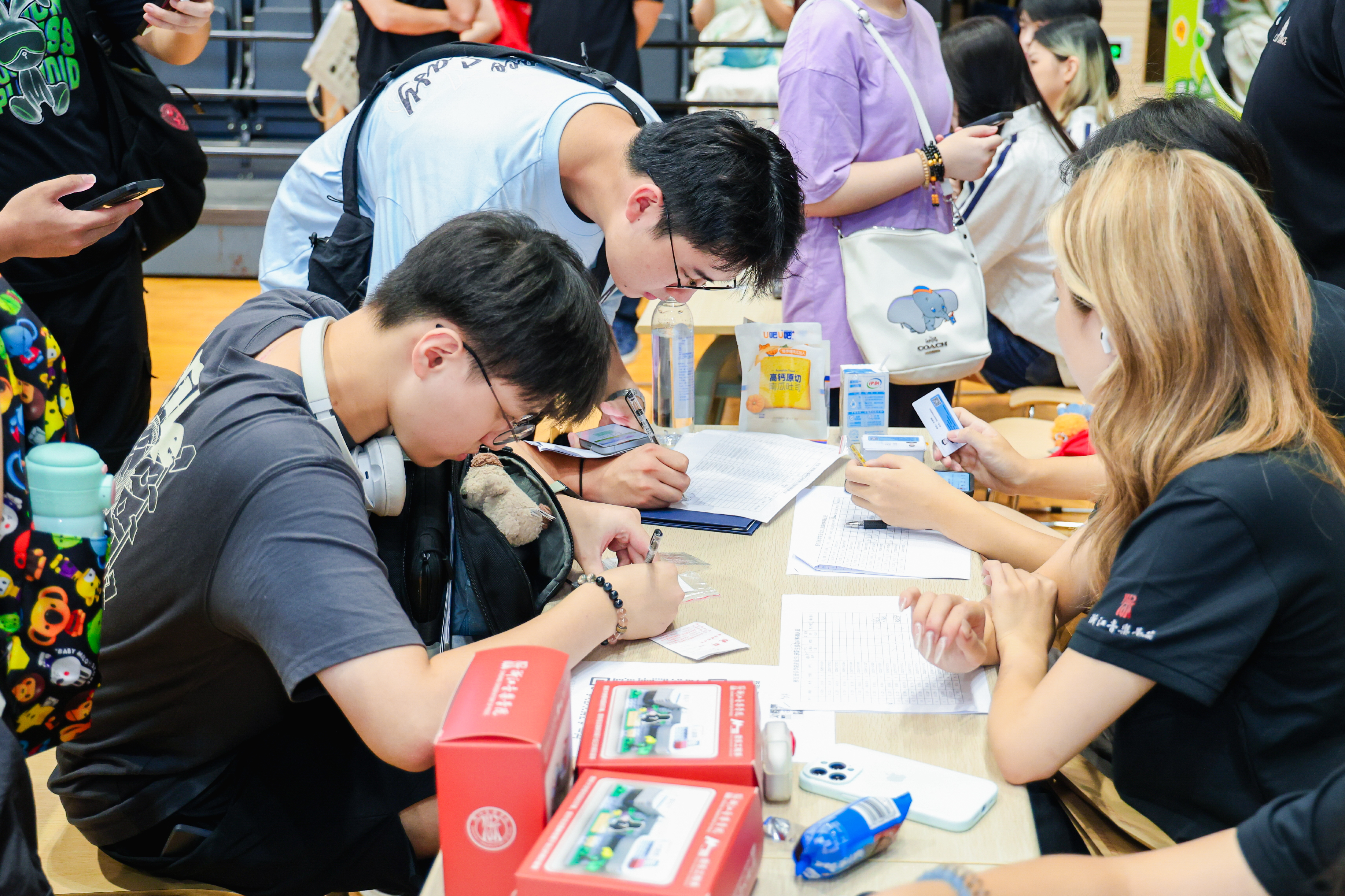 体育馆内,各院系设置的迎新驿站创意纷呈、心意满满,成为新生抵校后的第一处温暖“打卡点”。除贴心服务外,各院系还准备了独特的迎新小礼物,如作曲与指挥系以“发光画板旋转笔筒”,祝福大家被光亮与美好环绕、勇敢奔赴热爱与梦想;声乐歌剧系借AI技术与机器人学长共筑未来感迎新场景,更赠予新生NFC贴纸与手机可控唱片,以科技传递温情;钢琴系发放“修业护照”,期许记录四载成长点滴;舞蹈学院奉上“浪浪山的一封信”,鼓励学子勇敢启程、不负奔赴;音乐学系以校园拼图邀新生共探校园美景;戏剧系则送上励志盲盒,勉励大家告别“躺平”、积极“进击”……