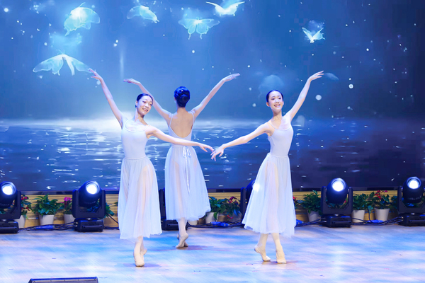 仪式现场,附中学子带来精彩的教学成果展演《最美附中》,表达对新校区启用的喜悦和对学校未来发展的美好憧憬。作品涵盖国乐合奏《卧虎藏龙》、中国舞群舞《小卜少》、弦乐四重奏莫扎特《G大调弦乐四重奏“春天”》第四乐章、现代芭蕾三人舞《十四行诗》、吹打乐合奏《龙腾虎跃》,琴声悠扬、舞姿翩然,尽显艺术教育的丰硕成果。