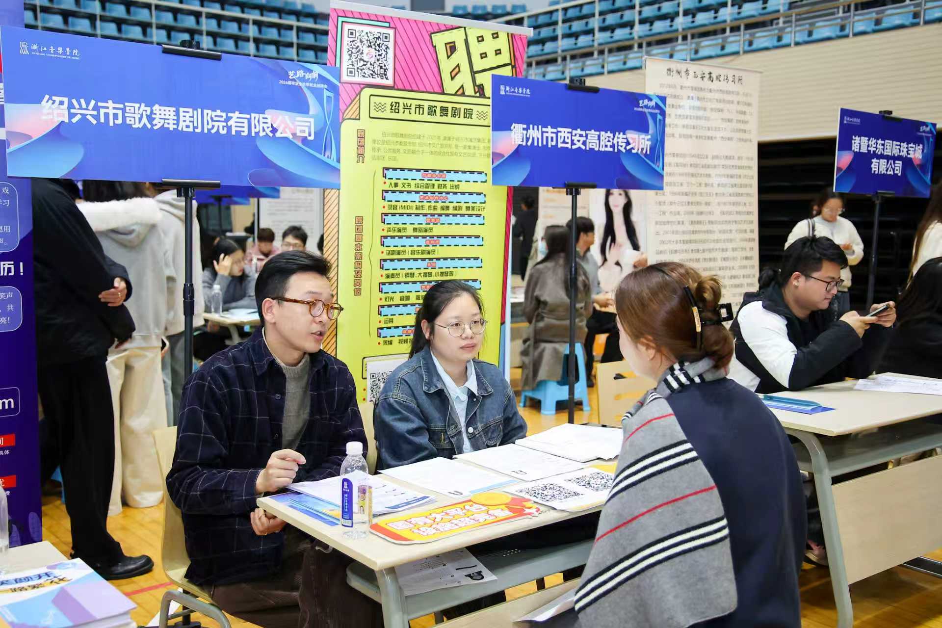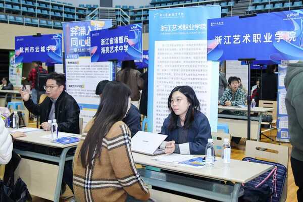 与往年不同,本届招聘会特别设置“专场宣讲+反向路演”环节,以“梦想启航”为主题,邀请浙江歌舞剧院、杭州银湖科技城硅谷小学、新绎只有红楼梦(廊坊)文化运营有限公司、兴业银行杭州分行、衢州大花园保利剧院等5家单位开展“8分钟精准宣介”,专注成长路径与职业发展蓝图,引导毕业生主动适应新时代就业环境,转变就业观念,积极拥抱多元职业路径,实现艺术人才的高质量充分就业。